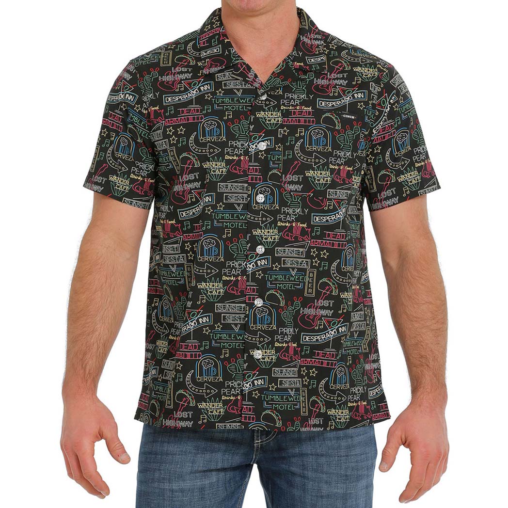 Cinch Men's Black Neon Sign Short Sleeve