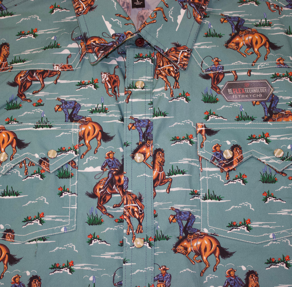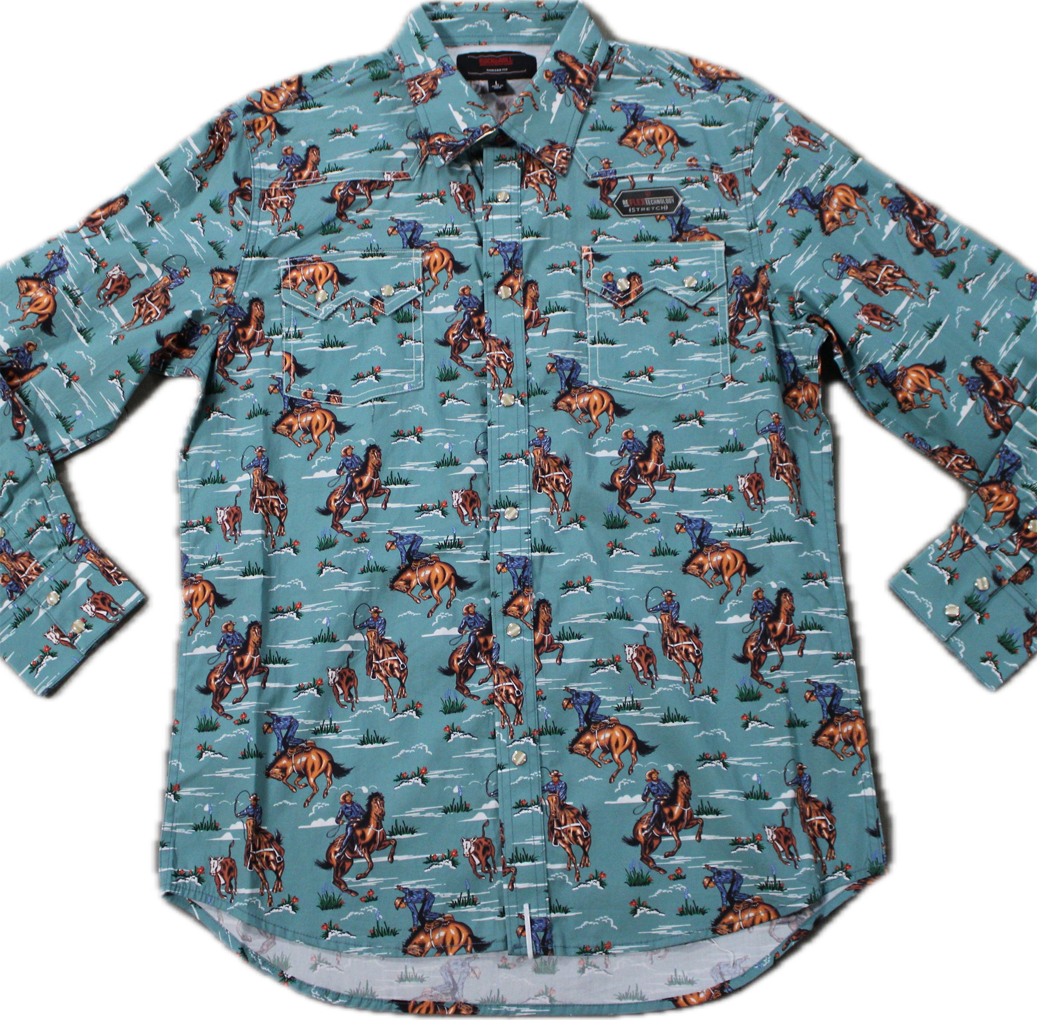 Turquoise Bronc Print Pearl Snap Shirt for Men
