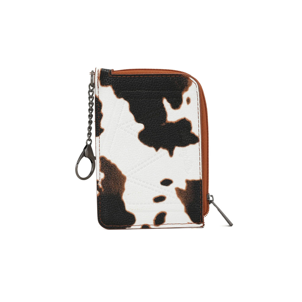 Carry your essentials in style with the Wrangler Brown Cow Print Zip Card Case. Its unique cow print design adds a bold, rustic touch to your everyday look, while the secure zip closure keeps your cards and cash safe. Compact and durable, this card case is perfect for those who want convenience without sacrificing personality. Elevate your accessory game with a piece that’s as practical as it is eye-catching.