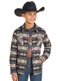 Gear up your young adventurer with the Panhandle Slim Boy's Black Aztec Jacket. Featuring a bold Aztec pattern on a sleek black canvas, this jacket combines standout style with rugged durability. Designed for fearless kids, it offers both warmth and a statement look that commands attention wherever they go. Perfect for conquering the outdoors or making a striking impression in the city.
