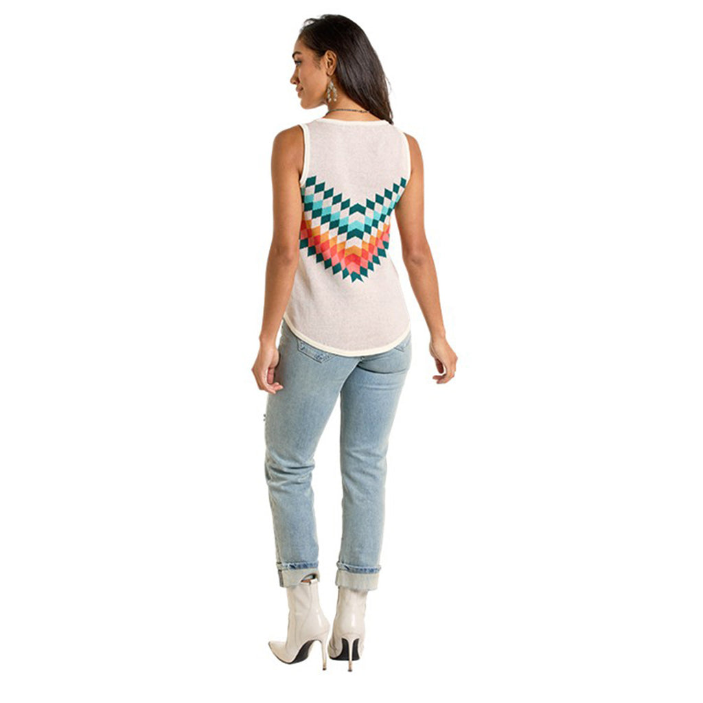 Rock & Roll Women's Cream Multicolored Chevron Knit Tank
