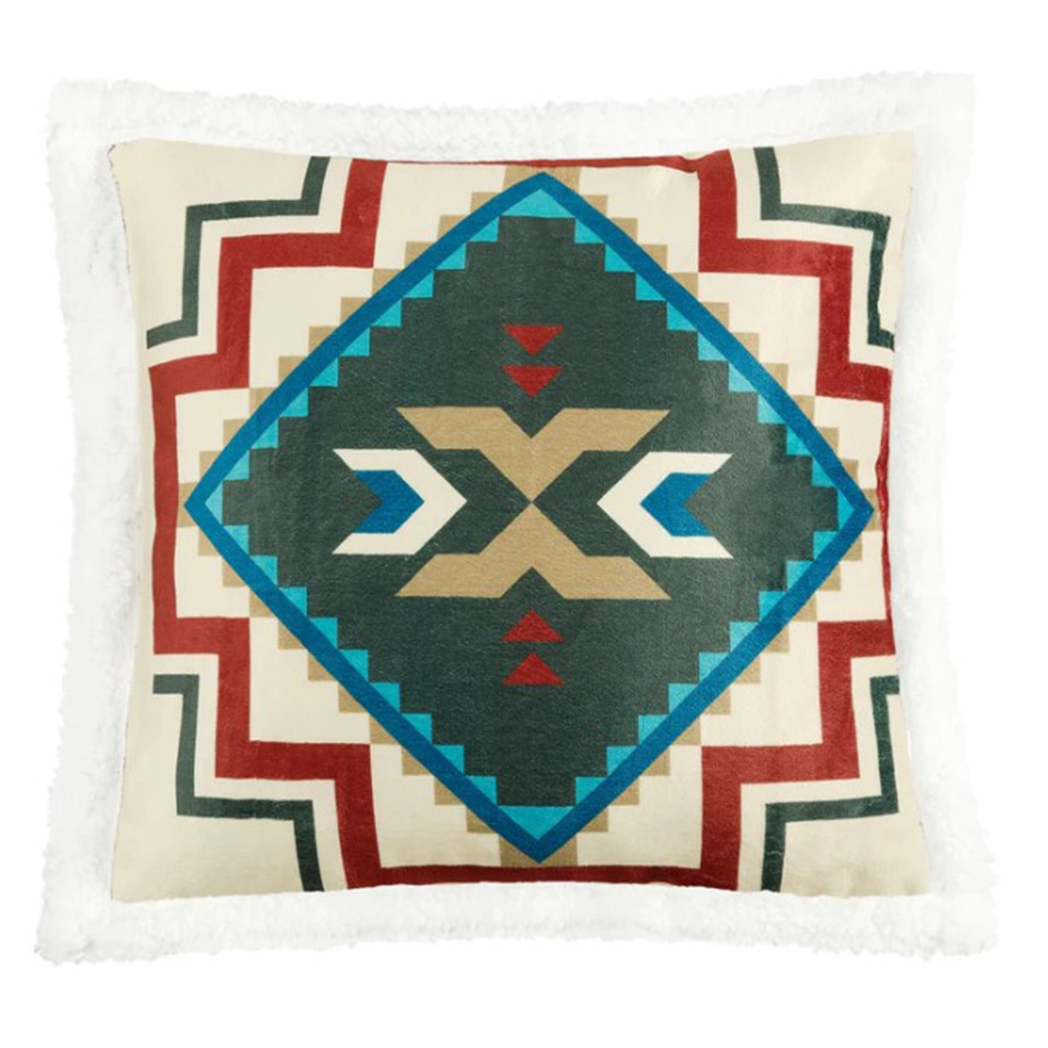 Showcasing Aztec-inspired patterns against a vintage white background, the spirit valley sherpa pillow brings vibrant character into your space. Made from plush sherpa fabric, this fashionable accent pillow beautifully exudes trendy Southwestern flair into any room.