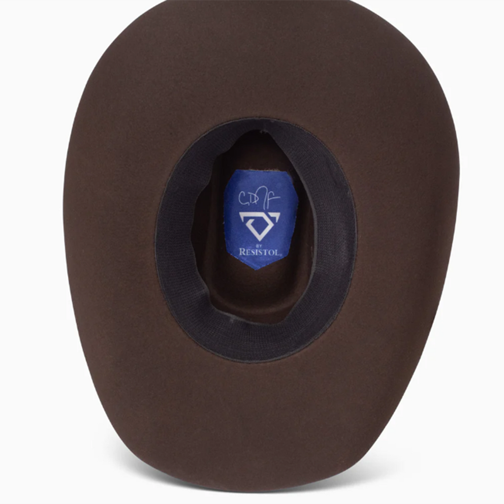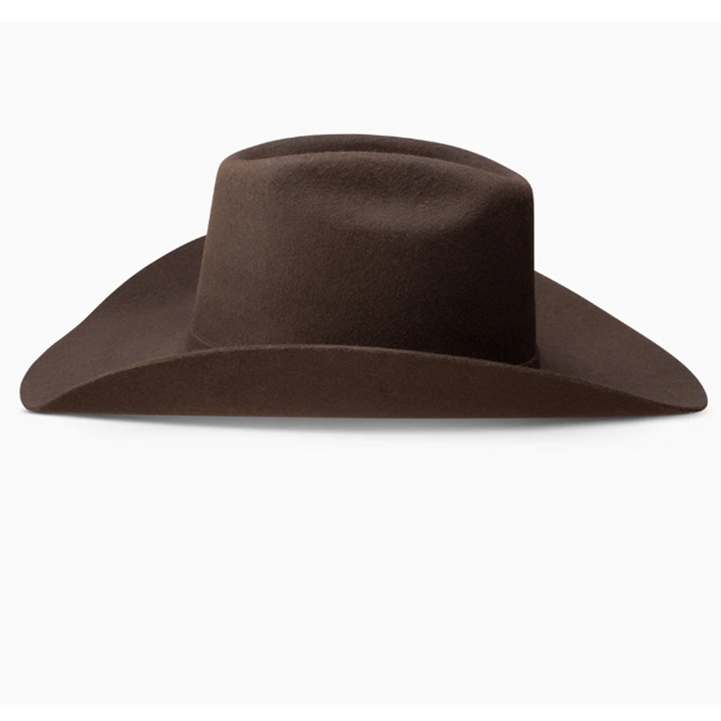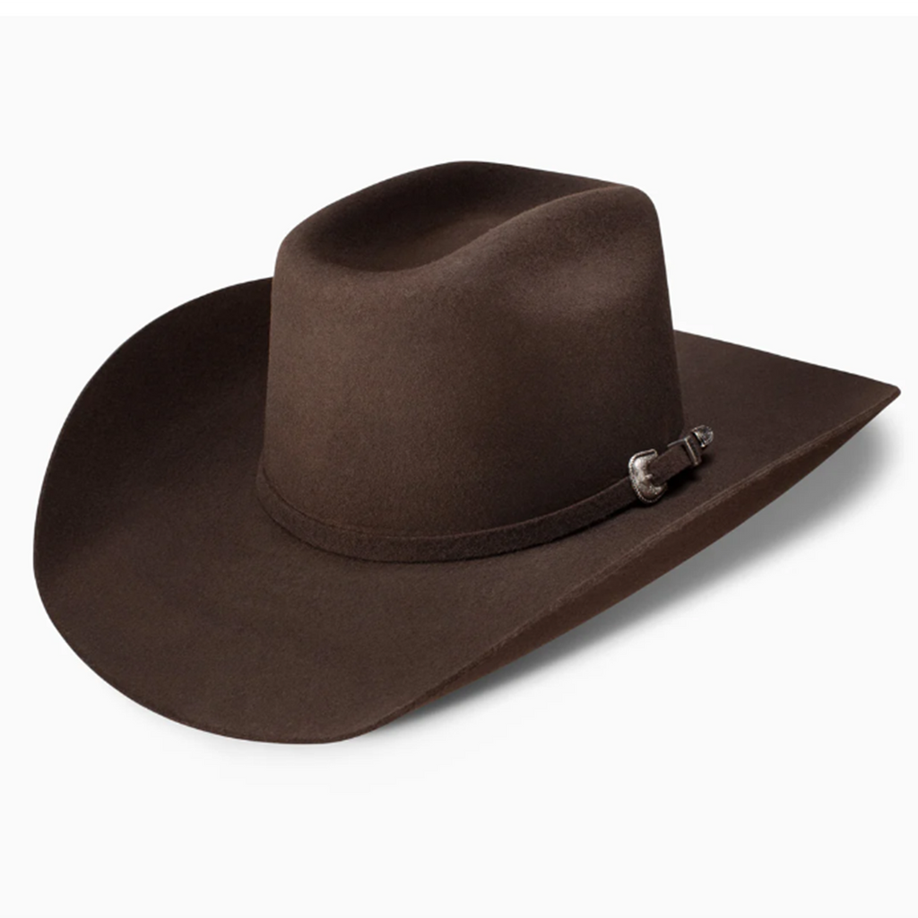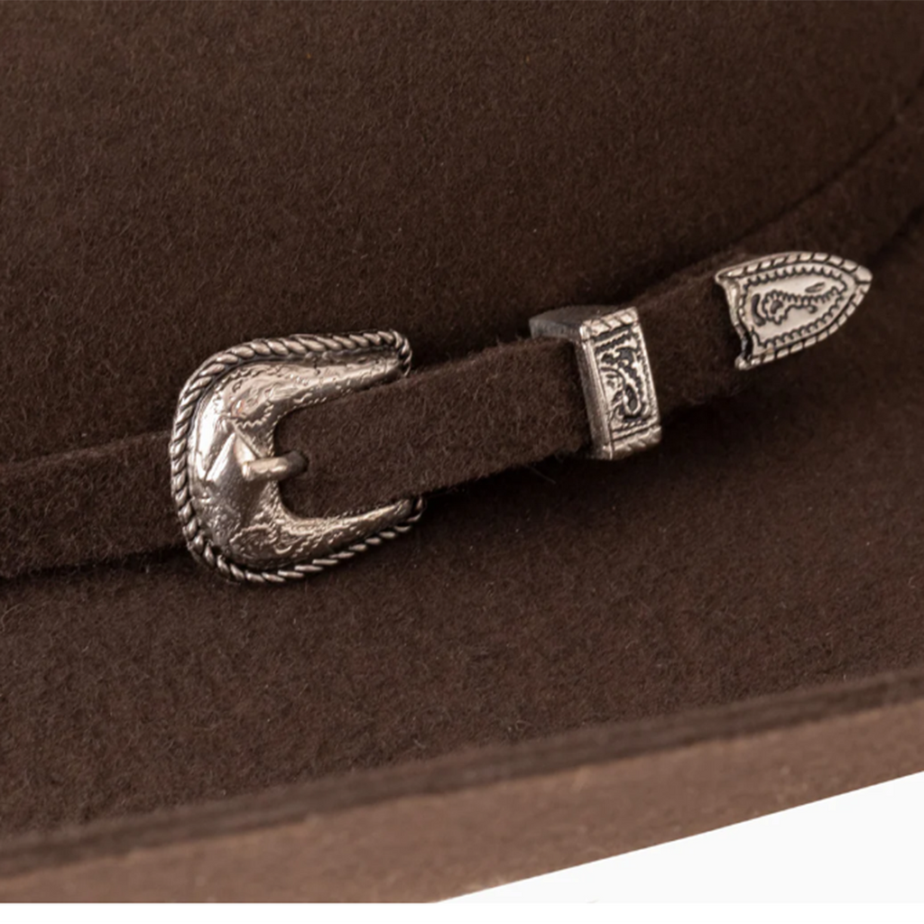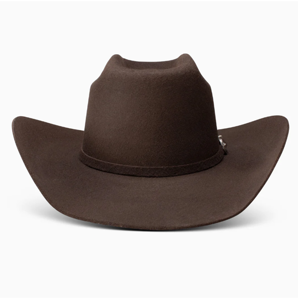 If you're looking for a great youth hat, then you will buy them this Cody Johnson Pennington Chocolate Youth Felt Hat by Resistol. This felt is so sharp, especially with the felt hatband that has a 3-piece buckle set. It has a 4" brim and features a 4 5/8" crown.