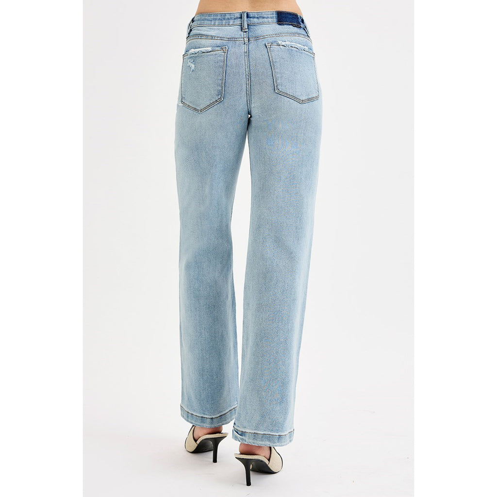 Experience effortless style and comfort with the Risen Women's Light Mid-Rise Wide Leg Jeans. Designed to flatter with a mid-rise fit, these jeans offer a relaxed wide-leg silhouette that moves with you. The light wash adds a fresh, versatile touch perfect for any casual or chic outfit. Crafted for all-day wear, they combine modern fashion with everyday ease, making them a must-have addition to your wardrobe. Elevate your denim collection with these stylish, comfortable jeans that promise both confidence and comfort.