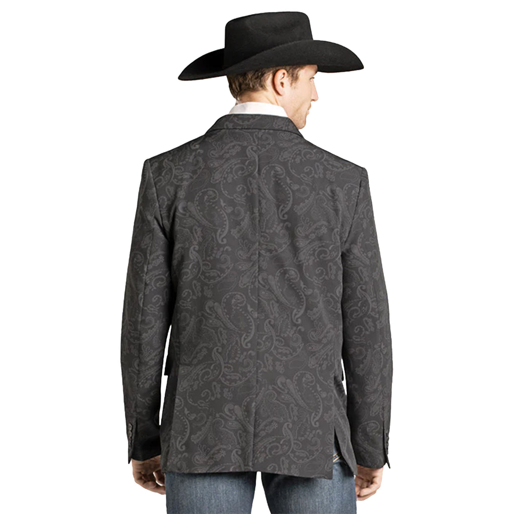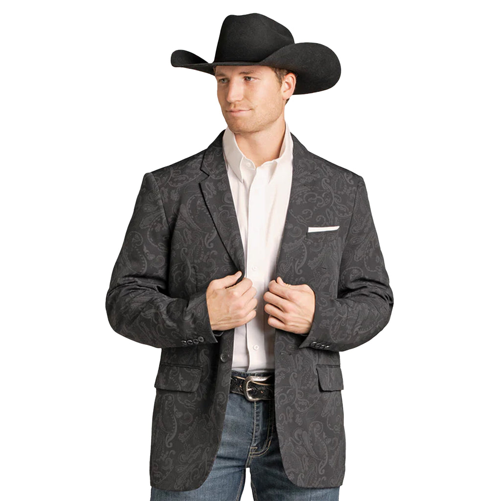 Step into the spotlight with this Rock & Roll Men's Black Paisley Sports Coat. Crafted from a soft blend of polyester and viscose, it features a bold black paisley jacquard print that’s ready to steal the show. With an open chest pocket, flap inside pockets, a notch lapel, and a double vent for smooth moves, this jacket brings edgy style and smart functionality together for your next head-turning moment.