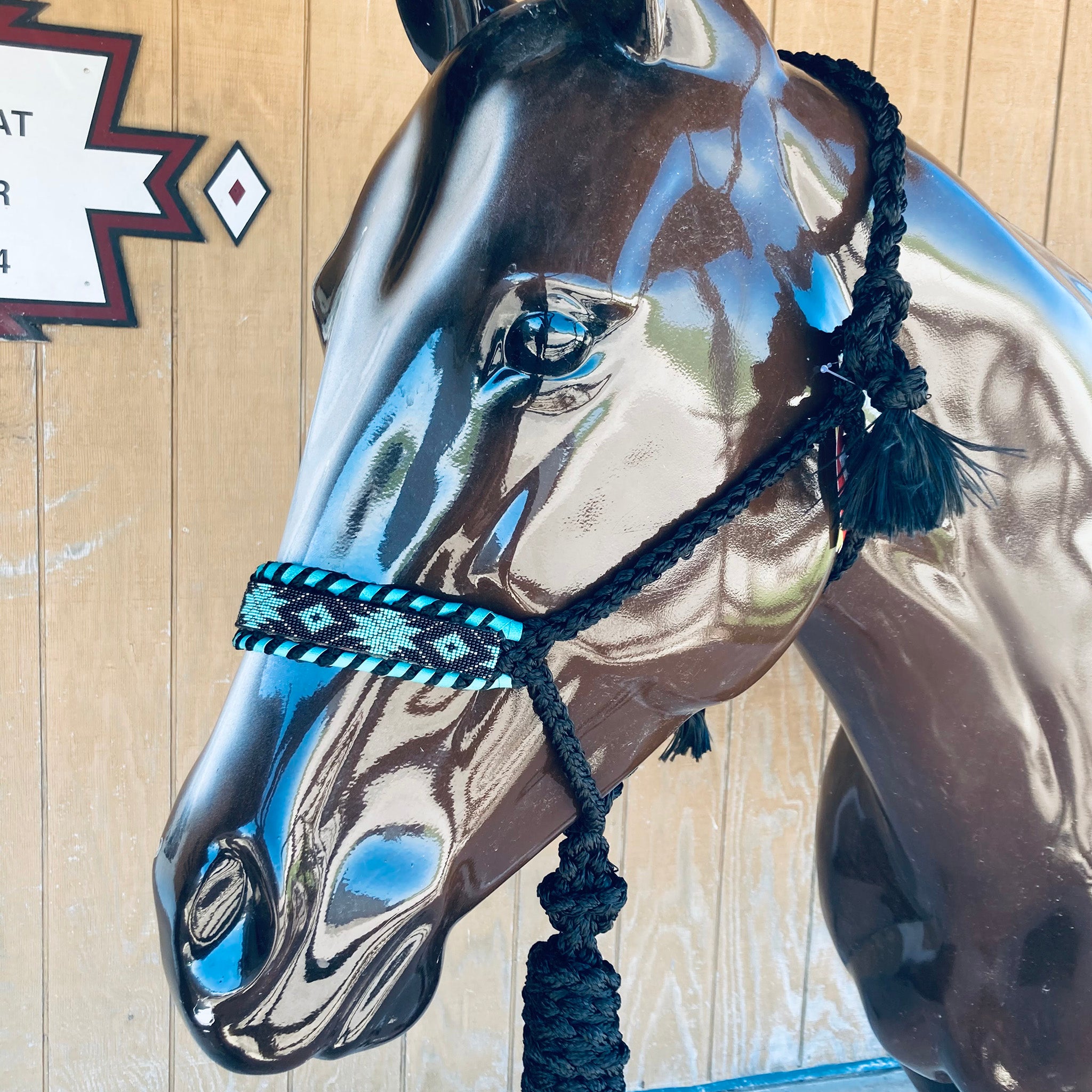 Black Turquoise Southwest Beaded Mule Tape Halter