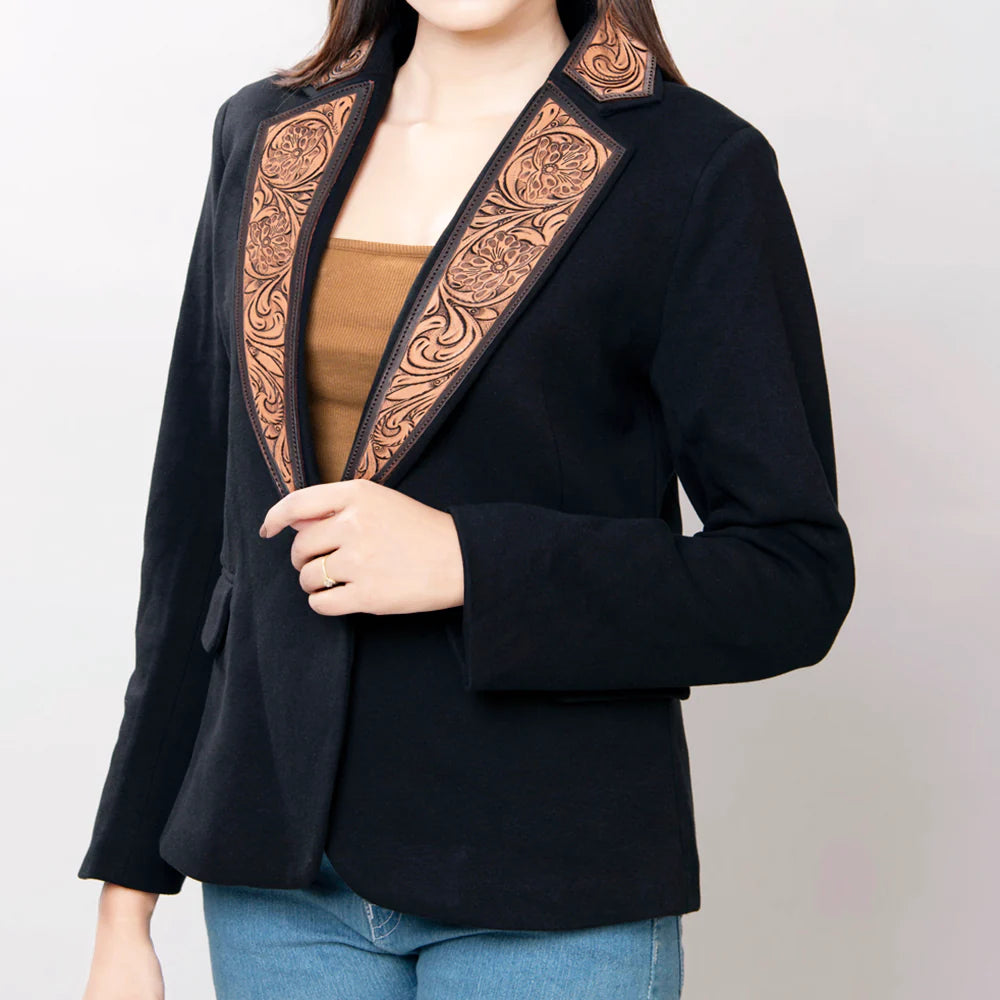 American Darling Black Tooled Leather Blazer