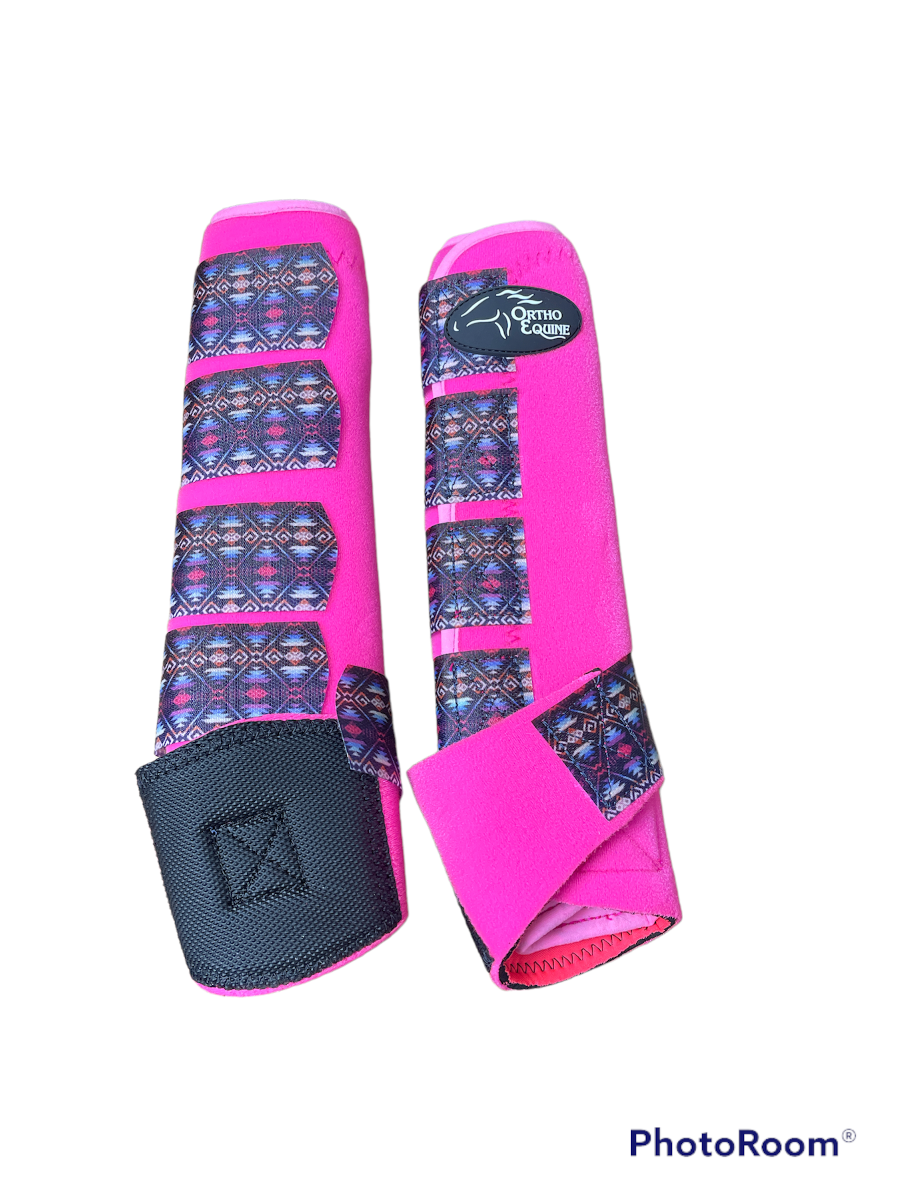 These Hot Pink and Pendlton hind boots from Ortho Equine provide comfortable, no sweat support for your horse while protecting from dirt and debris. These boots are lined with Intellitemp™, a breathable, temperature-regulating material designed to keep your horses skin a comfortable temperature of 83°.