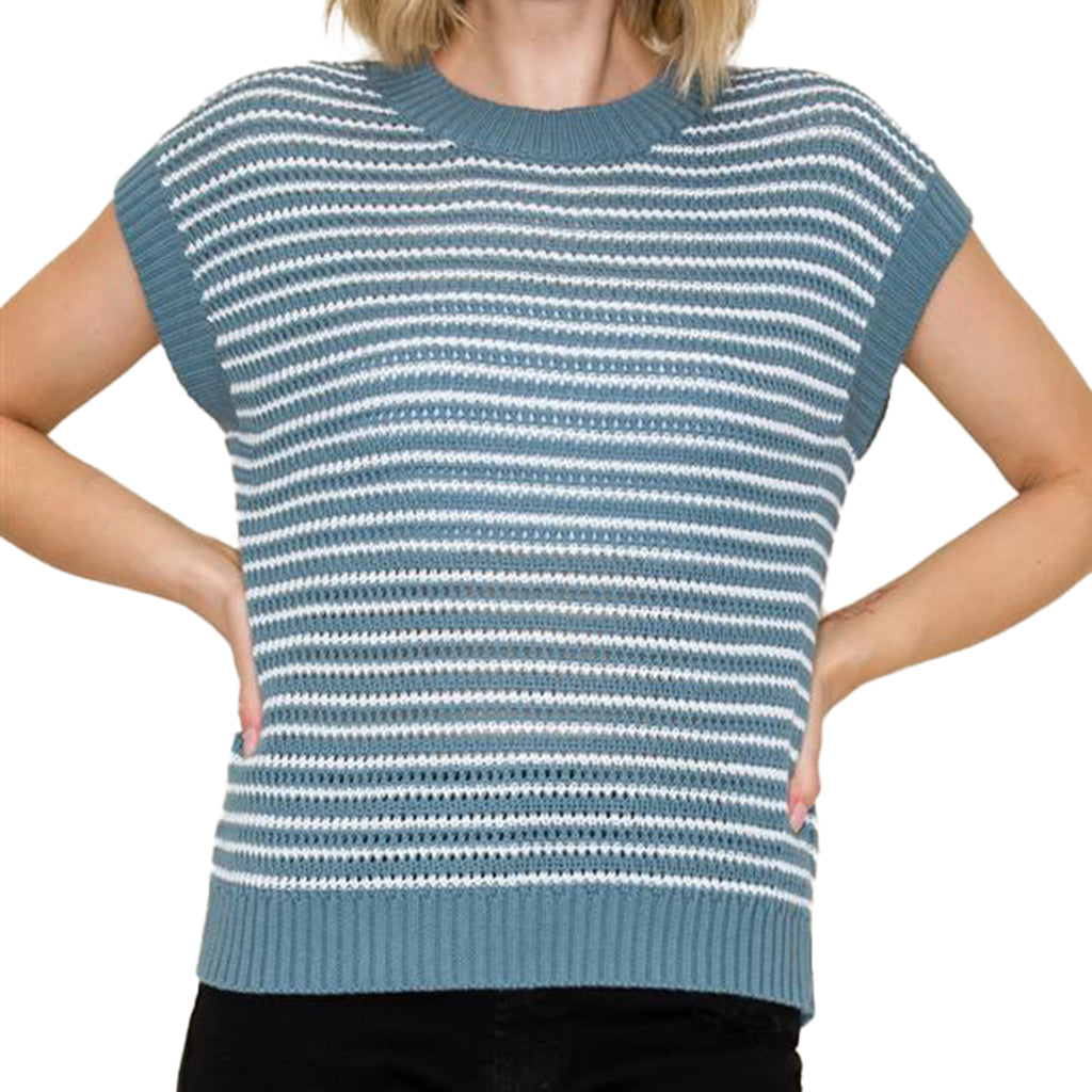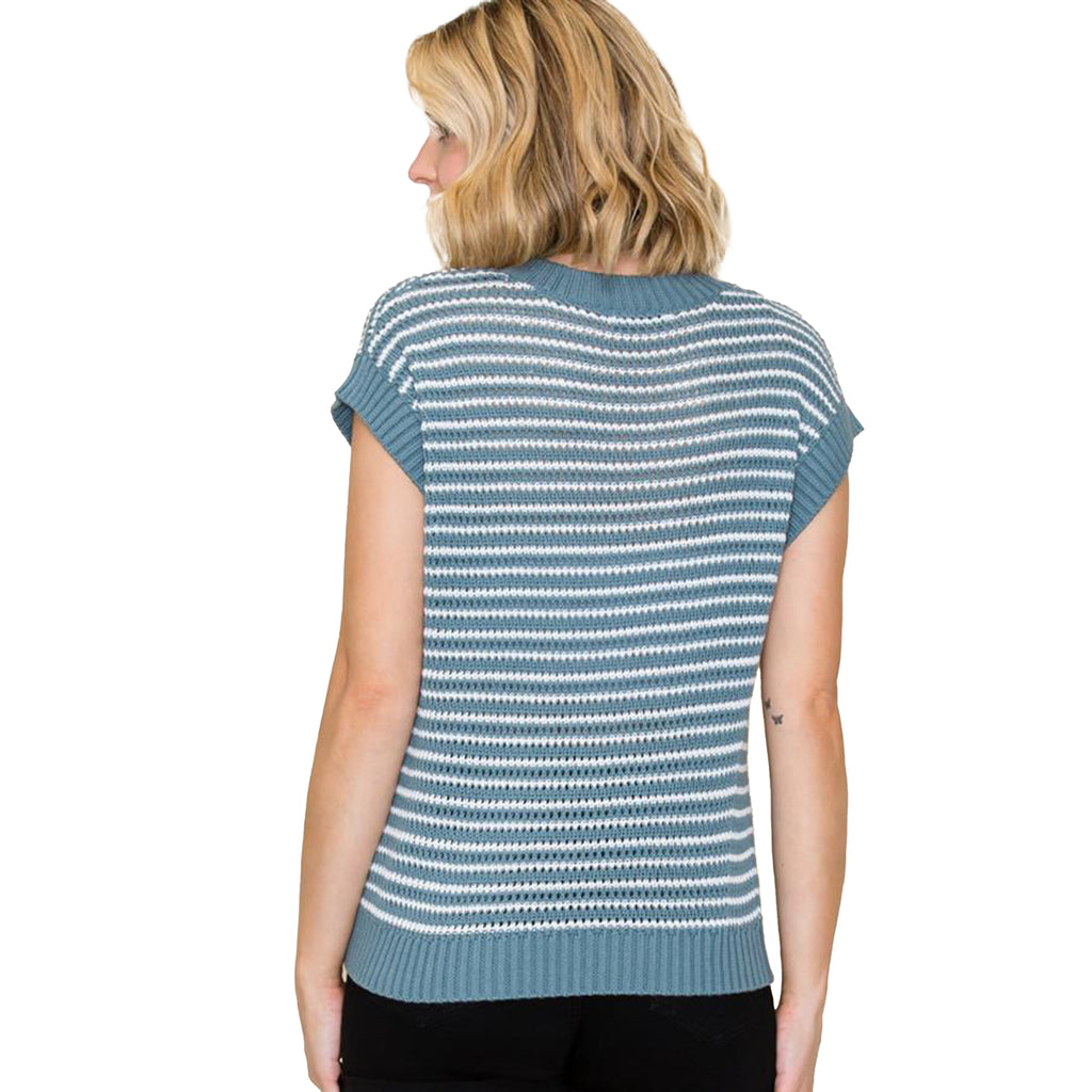 Women's White Stripe Short Sleeve Sweater by Staccato