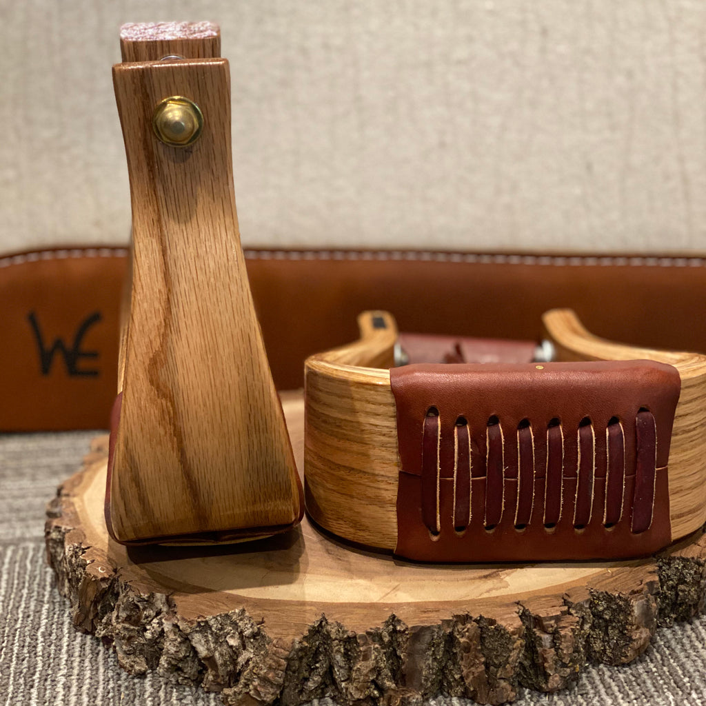 Wether you call it a Flatbottom or a Bell stirrup, This 3" Oversized Flat bottom stirrup is an all around stirrup. It is built slightly wider across its base so your boot sits comfortably on the tread, unhindered by the stirrup sides. A slight rise, like an arch in a shoe helps set your foot for a good ride. It is a comfortable fit, no matter if you perform, ranch or trail ride. It is made with 6 pieces of laminated oak to give it extra strength while the use lf the highest quality leather for pin covers and treads.