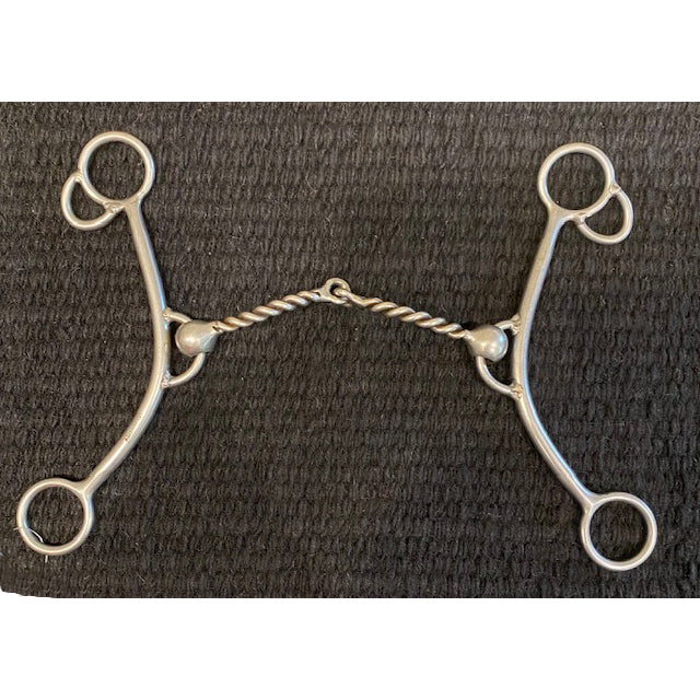 Handmade by Troy Flaharty, the "Big Betty" offers a great weight and feel. This bit is designed very similar to the regular Betty, just with a longer shank & back set curb. This particular bit features a twisted wire mouthpiece.