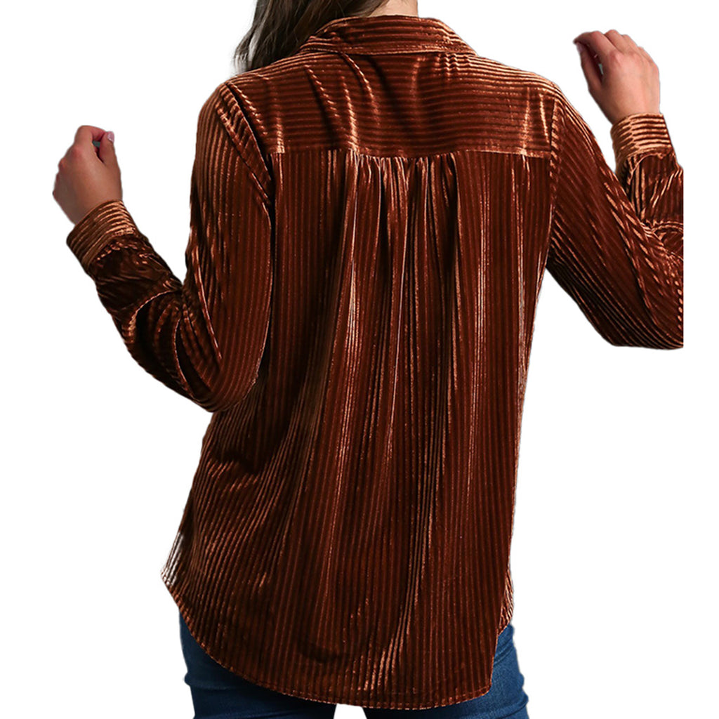Elevate your wardrobe with our Velvet Textured Button-Down Shirt. Made with a soft blend of polyester and spandex, this shirt features chest pockets and a button-down front for a classic and practical look. With a variety of colors and a distinctive stripe pattern, this shirt is sure to add a touch of sophistication to any outfit. Plus, the unique velvet fabrications provide a subtle shine, making each colorway unique. Upgrade your style game with this must-have shirt.