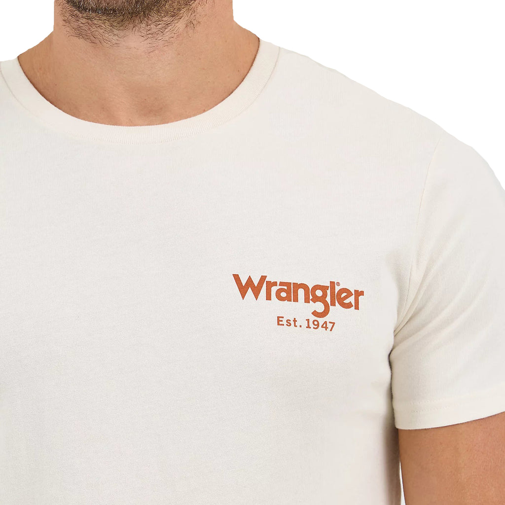 When riding a wild bronc, precision matters in every movement. Kick off rodeo season confidently with this screen-printed tee. Celebrating one of rodeo's most challenging events, this men's shirt displays a dynamic splatter design featuring a saddle bronc rider demonstrating the skill needed to endure those crucial eight seconds. Complete with the authentic Wrangler® logo, this short-sleeve t-shirt honors the spirit of professional rodeo.