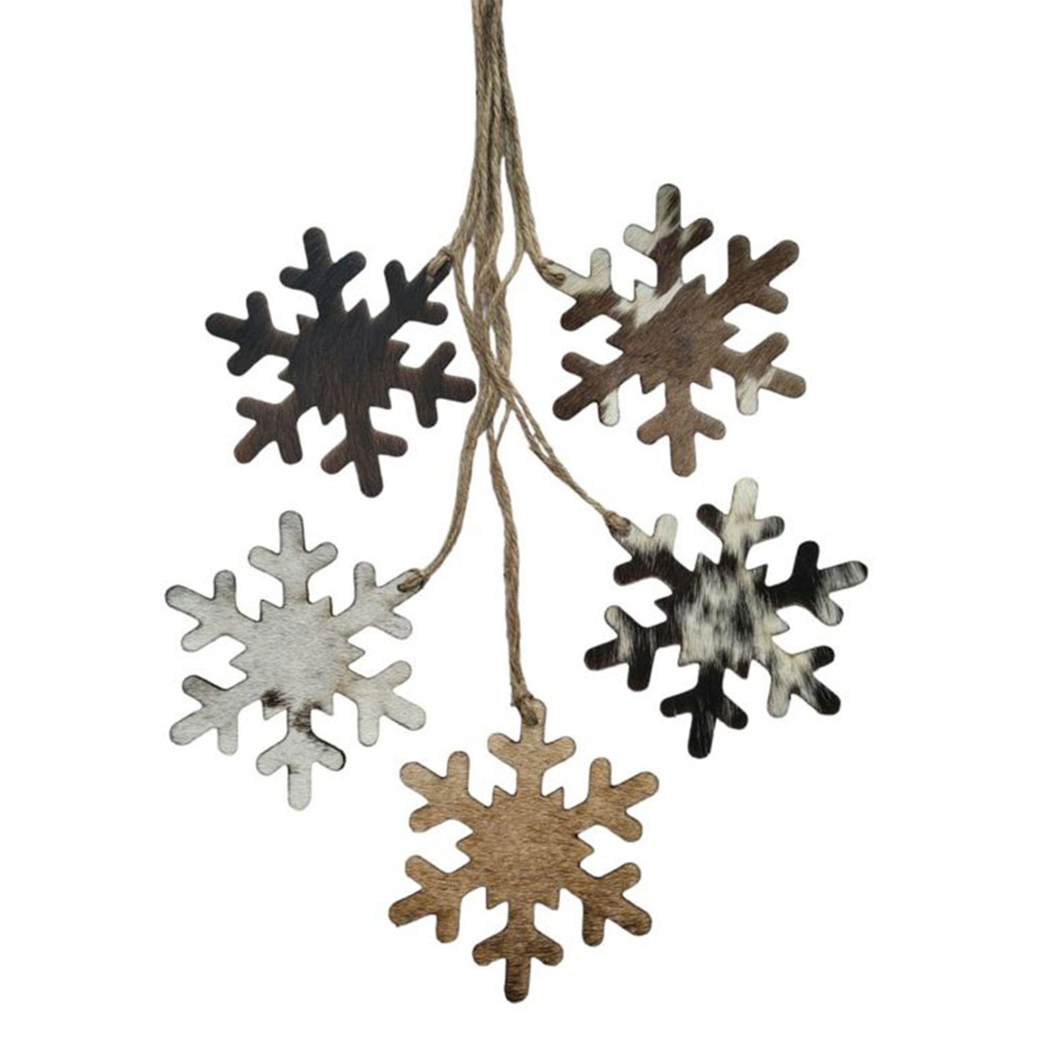 Celebrate the holiday season with elegance through this Cowhide Snowflake Christmas Ornament. Crafted from authentic cowhide, it blends rustic charm with refined design, adding a timeless and sophisticated touch to your festive décor.