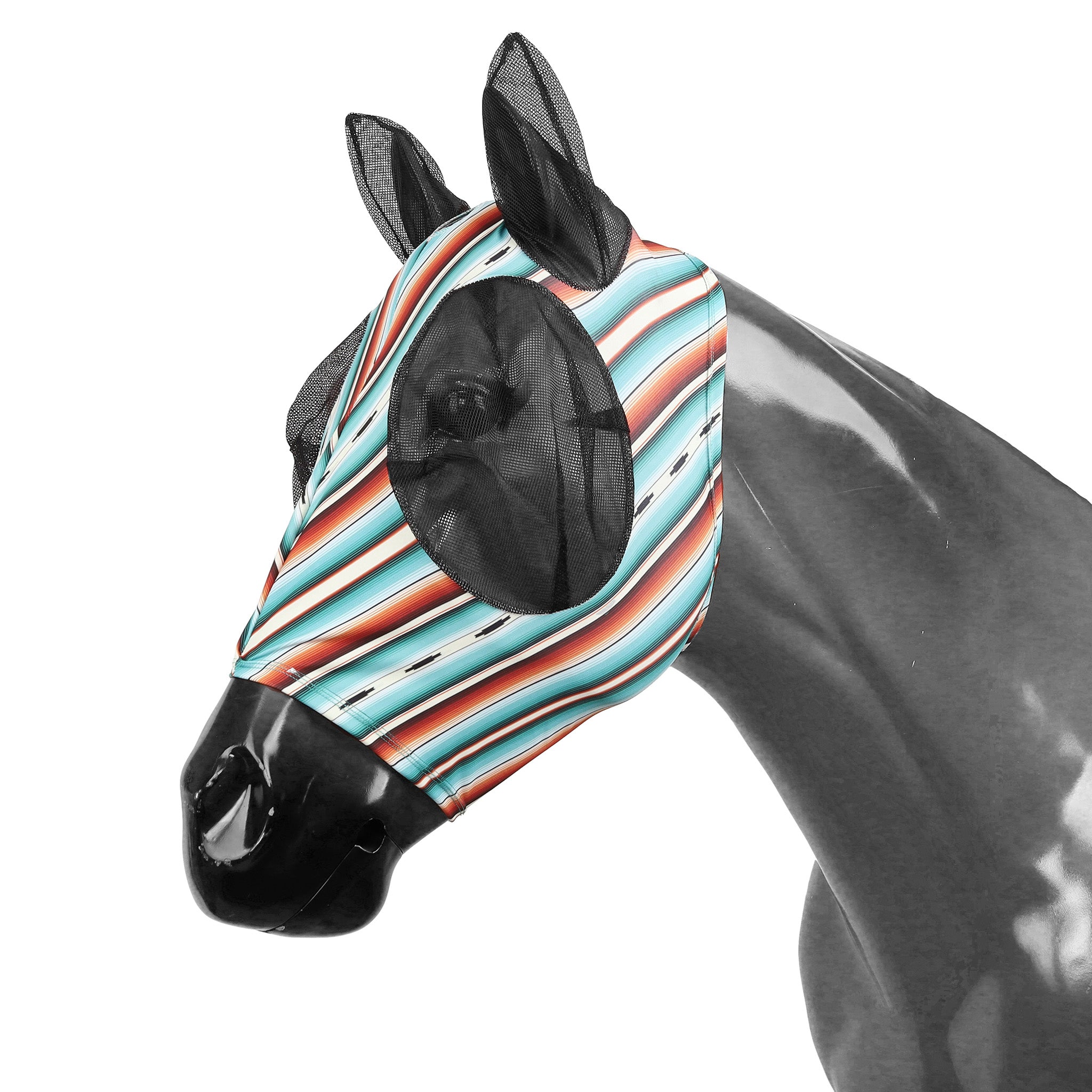 Its vibrant teal serape design adds a stylish touch, making it a practical and attractive choice for your horse’s daily wear. Designed to fit securely without restricting vision, this fly mask helps keep your horse calm and focused during outdoor activities.