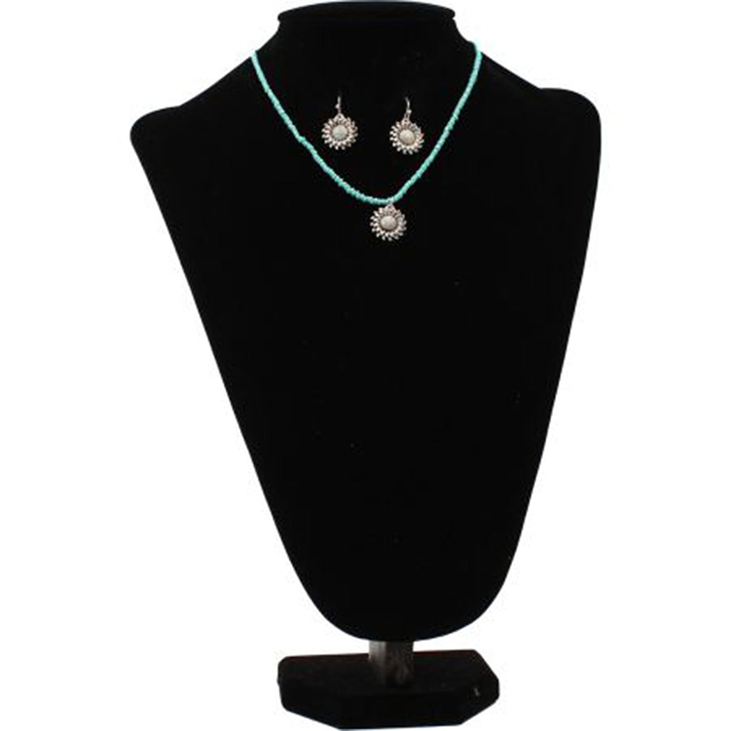 Turquoise Beaded Sunflower Set – Necklace & Earrings for Cowgirl Style