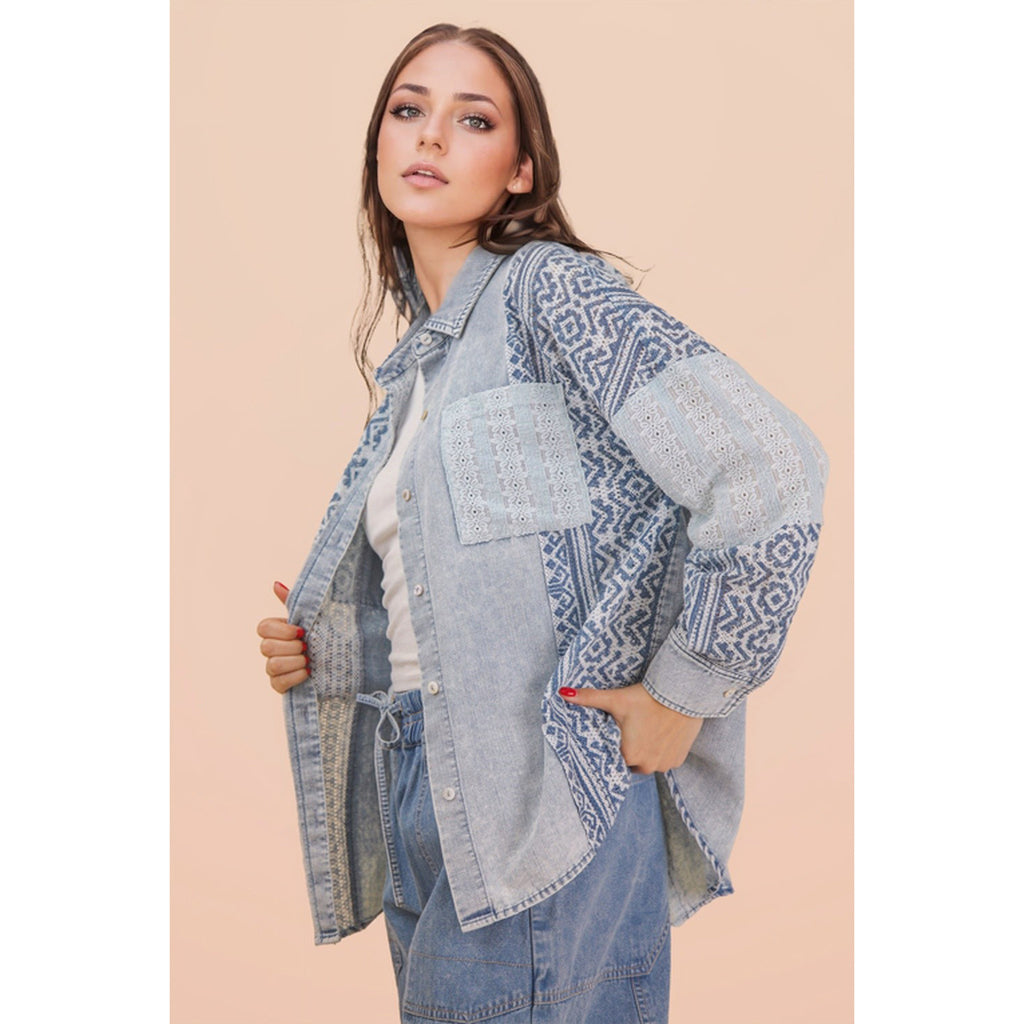 Effortless style meets everyday comfort in this women's light blue denim shirt. Featuring contrasting long sleeves and a classic denim construction, it's perfect for layering or wearing solo. The timeless design pairs easily with jeans, skirts, or casual pants for a versatile wardrobe staple. Durable fabric ensures lasting wear through countless washes. Whether you're heading to the ranch or running errands around town, this shirt delivers that authentic Western edge with modern appeal.
