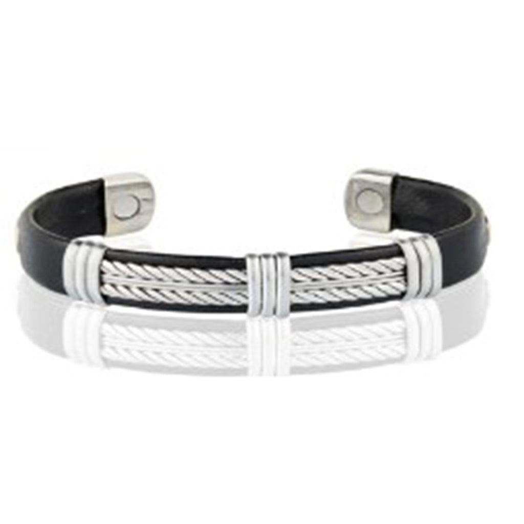 - Leatherette Silver Tone Copper Cuff With Magnets