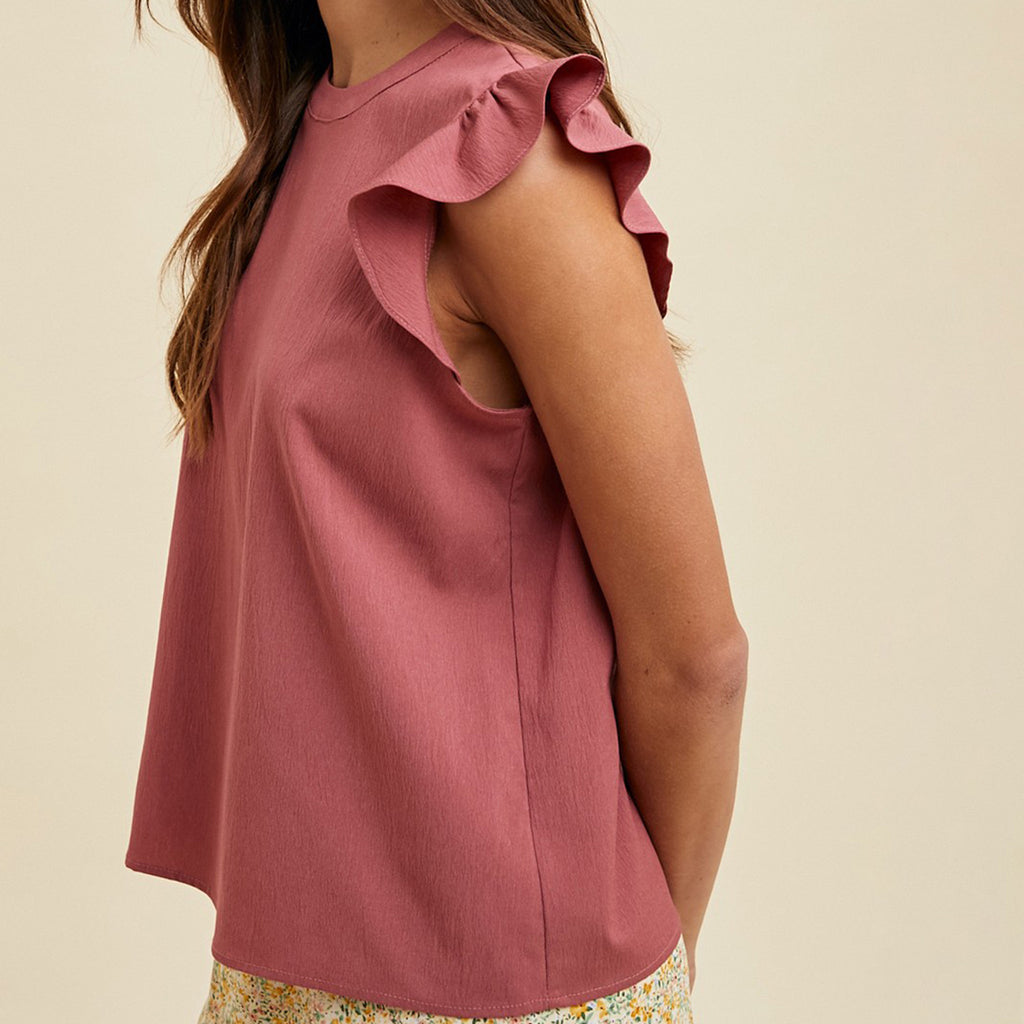Designed with a flutter sleeve, this top offers subtle and elegant movement. Crafted with high-quality materials, it provides comfort and style, making it a versatile piece for any occasion. Elevate your outfit with this stylish and timeless top.