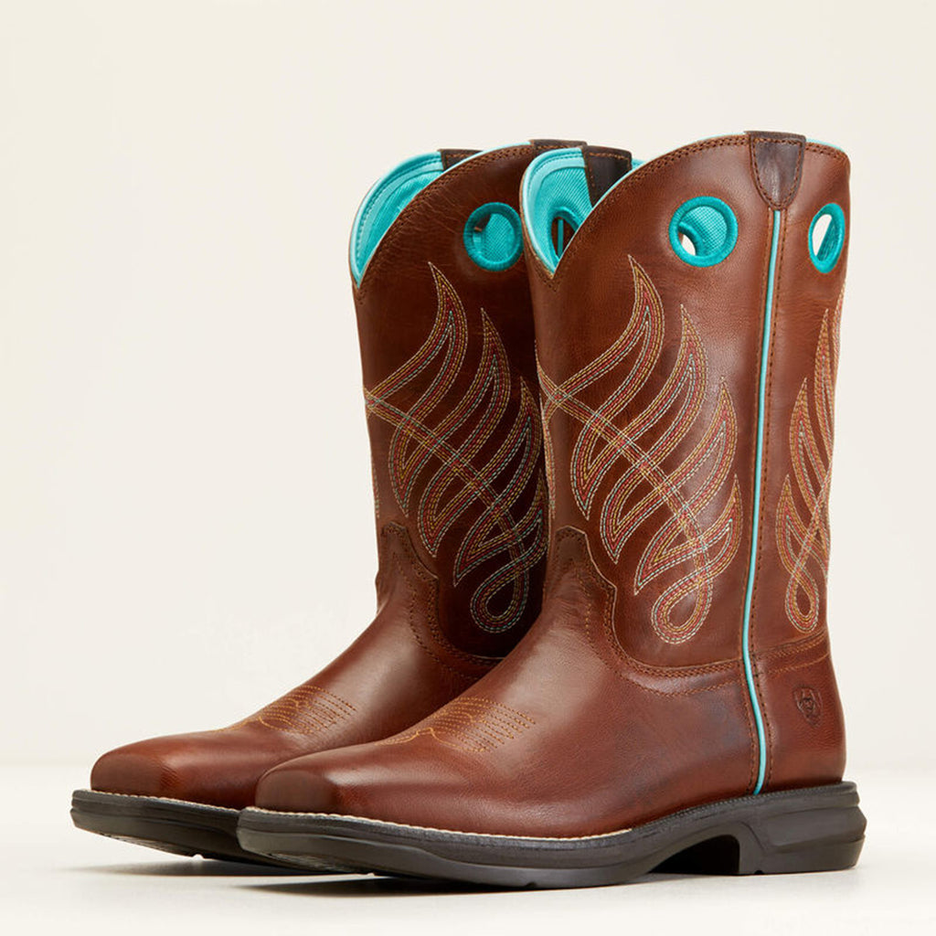 Featuring a striking two-tone design that blends warm tan leather with a bold Aztec sole patterning, these boots deliver authentic cowgirl charm with modern flair. The classic square toe silhouette offers a comfortable, flattering fit that works for ranch days or nights out. Whether you're a seasoned rider or embracing Western fashion, the Myra boots are your go-to choice for standout style and reliable performance.