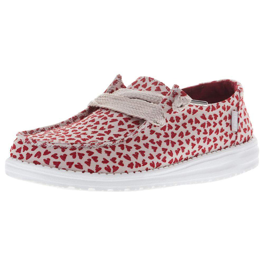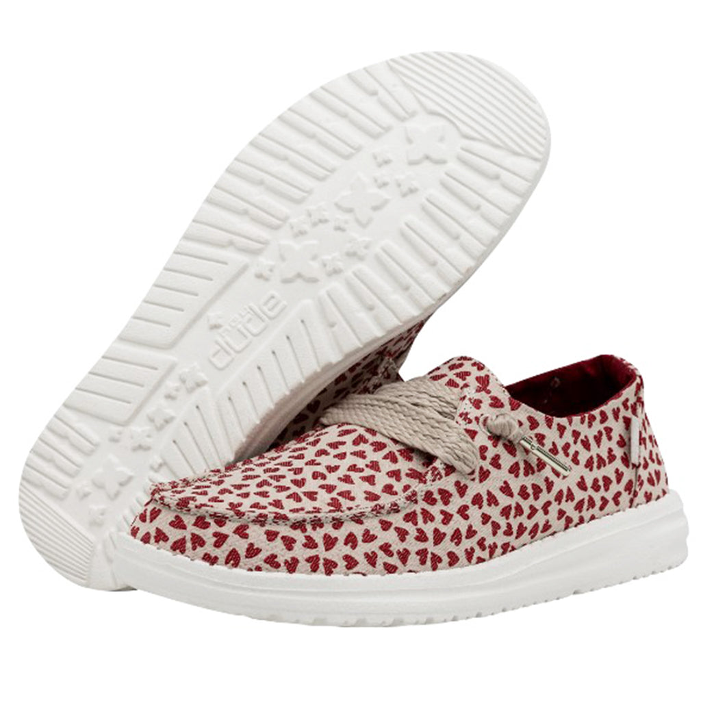 Fall head over heels for the Hey Dude Wendy Love Women’s Casual Shoe! You'll adore the charming hearts pattern and the effortless slip-on design-- plus, the cushioned insole and lightweight outsole will have you lovestruck. Easily adjust the laces for a snug fit that's just your style. With its eye-catching hearts pattern, the HEYDUDE Wendy Love Women’s Casual Shoe is the perfect addition to your rotation this season!