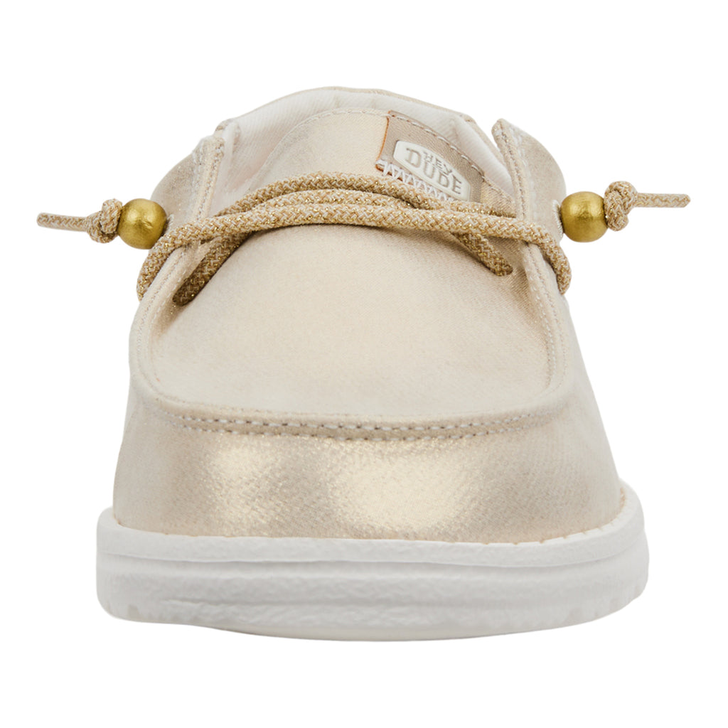 Indulge in luxury with Hey Dude Women's Wendy Metallic Gold Shoes. These shoes are more than just a fashion statement - their metallic gold design adds a touch of sophistication to any outfit. With Hey Dude's signature comfort and quality, these shoes will elevate your style and elevate your comfort.