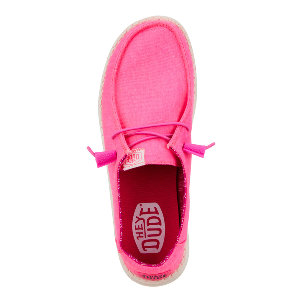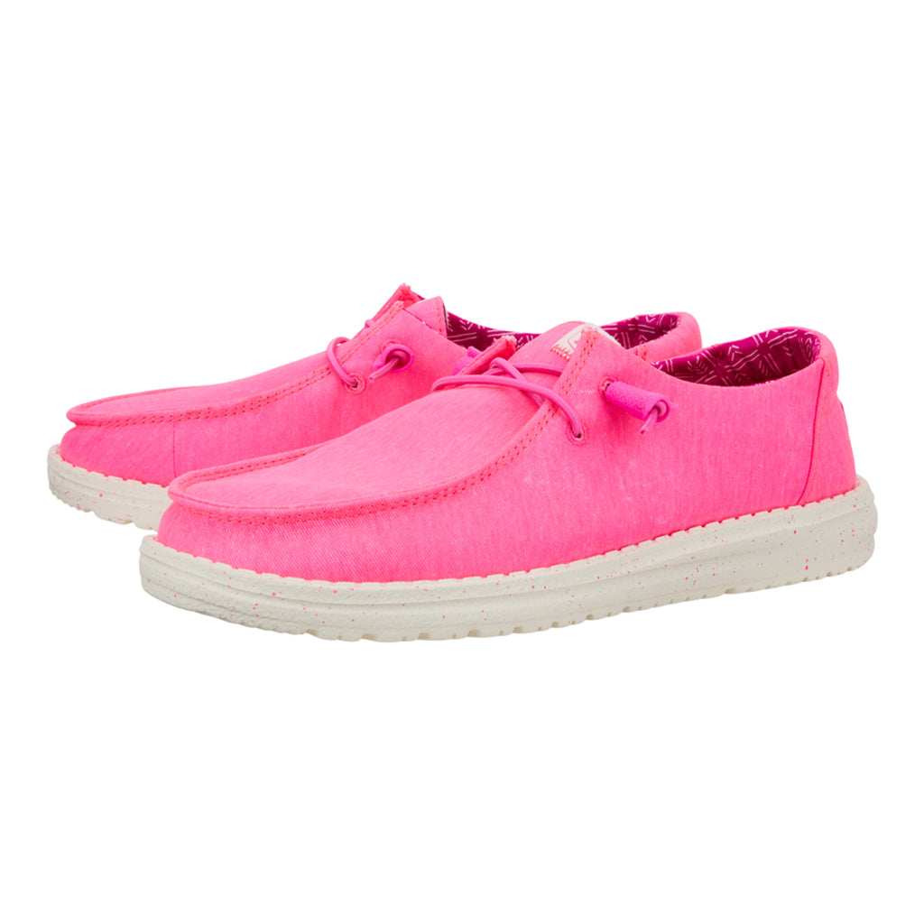 Step out in style with the Hey Dude Wendy Neon Pink Stretch Canvas Shoes. These playful shoes feature a stretch canvas design that provides a comfortable and flexible fit. Perfect for any casual outing, these shoes are sure to add a pop of color to your wardrobe.