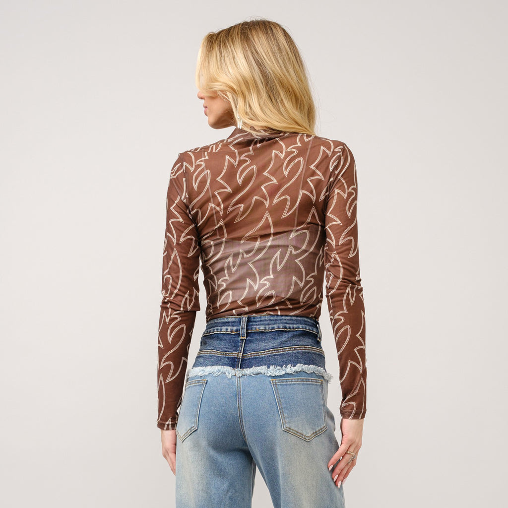 Dark Brown Boot Stitch Mesh Long Sleeve