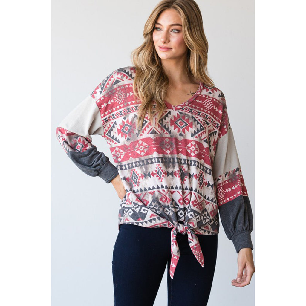 CY Fashion Women's Aztec Color Block Long Sleeve Top