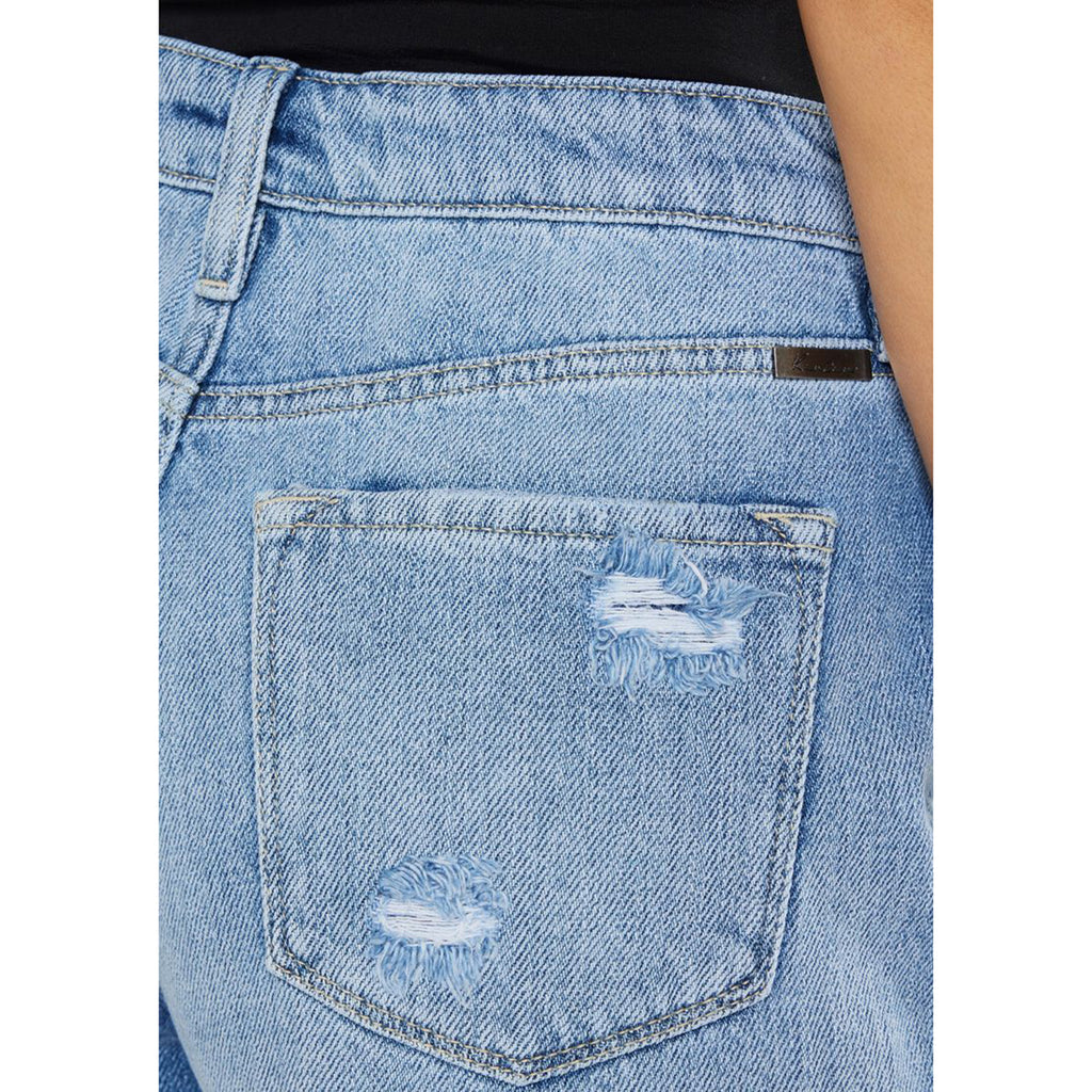 The Rosie high rise shorts add a fun little flair to any outfit and will go perfectly well with any of your favorite tops! Featuring a high-rise fit that cinch and accentuates your waist, distressed details with patches inside, folded hem, fading, whiskering, five-pocket design, and a zip-fly closure.