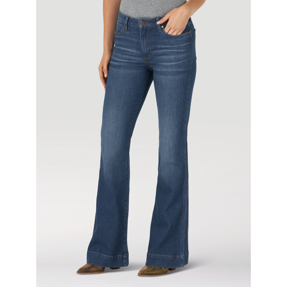 The Wrangler Retro Sara High Rise Trouser will soon become your favorite jean! The style offers a close fit through the thigh before releasing at the knee to a subtle, wide leg opening that fits perfectly around your favorite boots. Great for dress or competition. We promise you will love these jeans as much as we do!
