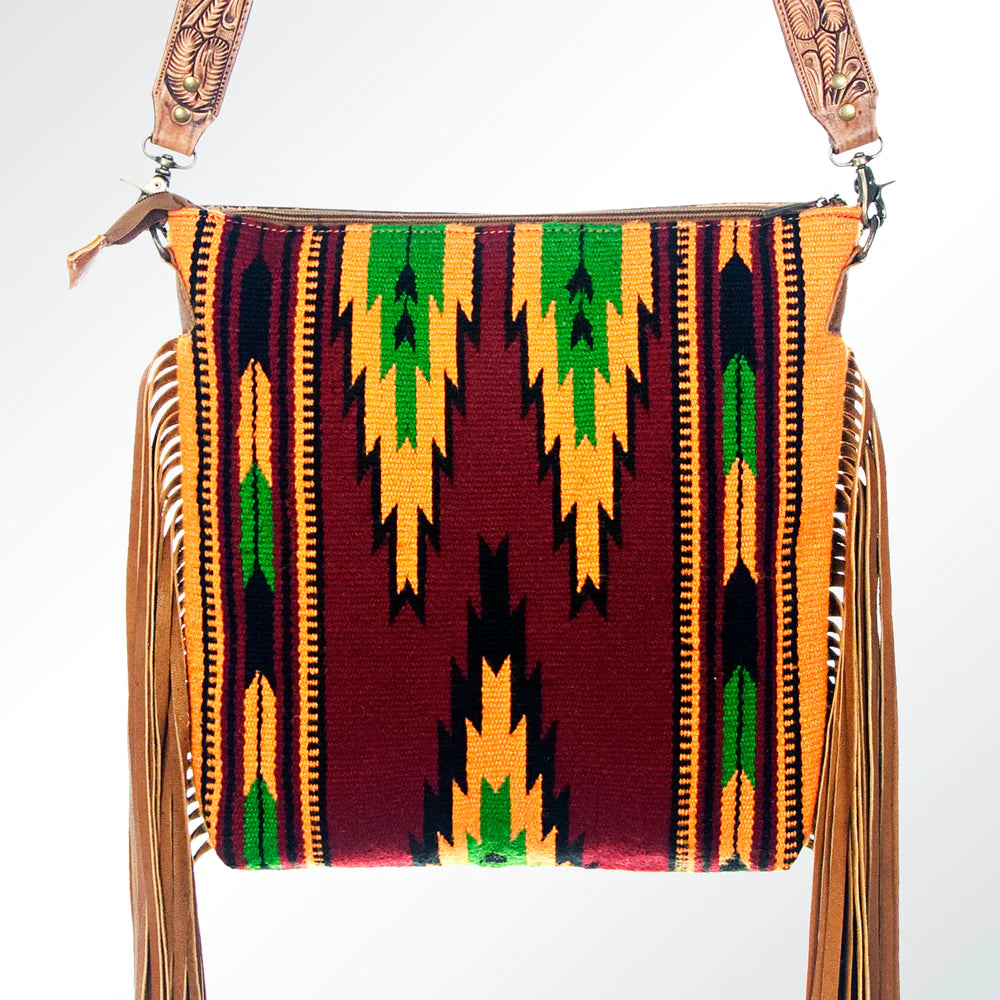 American Darling Cranberry Aztec Blanket Fringe Purse