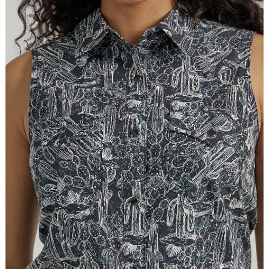 Wrangler Women's Black White Cactus Sleeveless