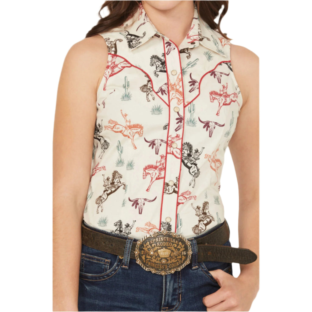 Unleash your wild side in this Rock & Roll horse print tank top. With a bold horse print and snap closure, this tank is perfect for any risk-taker looking to make a statement. Embrace your adventurous spirit and show off your love for horses in style!