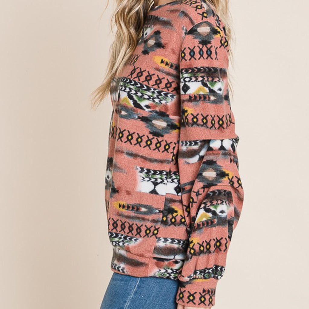 Vanilla Bay Women's Blush Aztec Long Sleeve Top