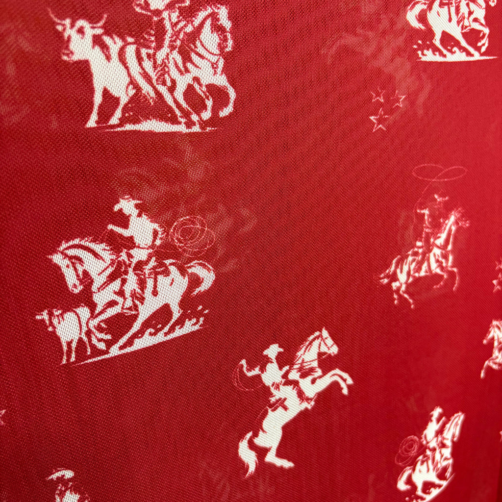 Sheer Red Long Sleeve Shirt with Bronc Graphic