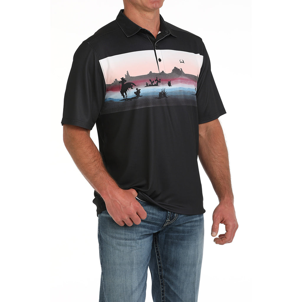 Crafted with Cinch's Arenaflex fabric, this polo offers maximum flexibility and movement for all-day comfort. The unique desert scene design adds a touch of rugged sophistication. Perfect for any occasion, this polo is a must-have for any gentleman's wardrobe.