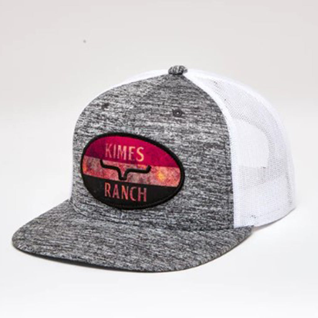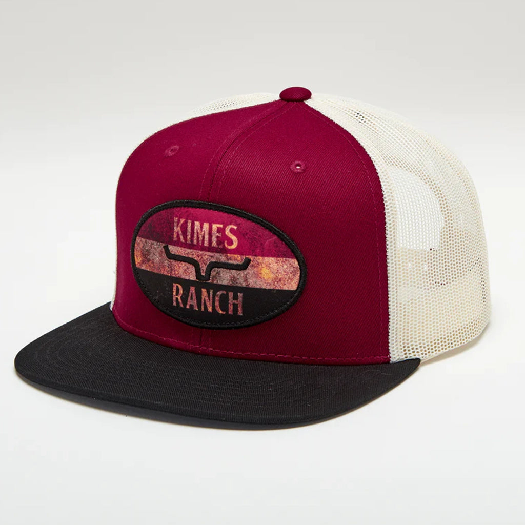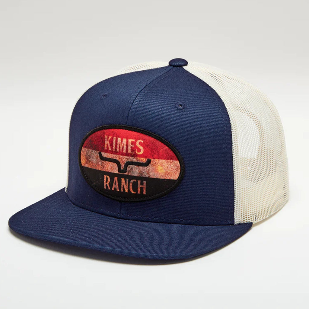 The American Standard trucker cap from Kimes Ranch is a best seller! These American Standard caps have a high-profile, with a poly mesh back. They feature classic vintage oval red, white, & blue Kimes Ranch Logo patch front and center. The back has an adjustable snapback, to give you the perfect fit.
