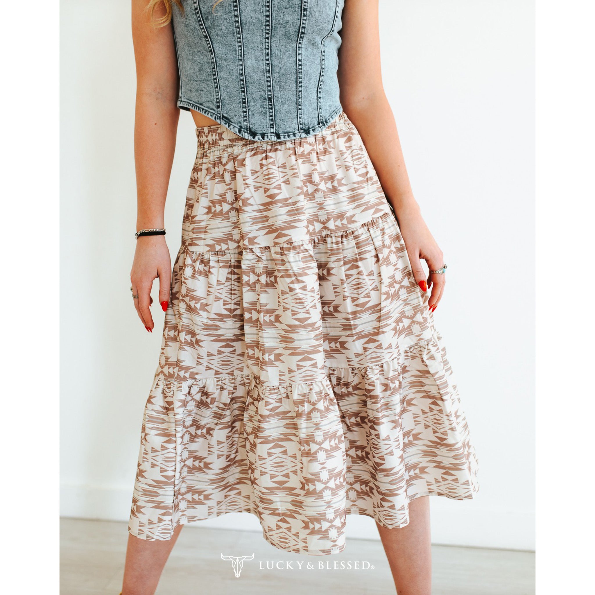 This stunning skirt features a unique Aztec design, making it a must-have for any fashion-forward woman. Not only will you look stylish and on-trend, but the flowy maxi length will also keep you comfortable and confident all day long. Elevate your wardrobe with this statement piece today!