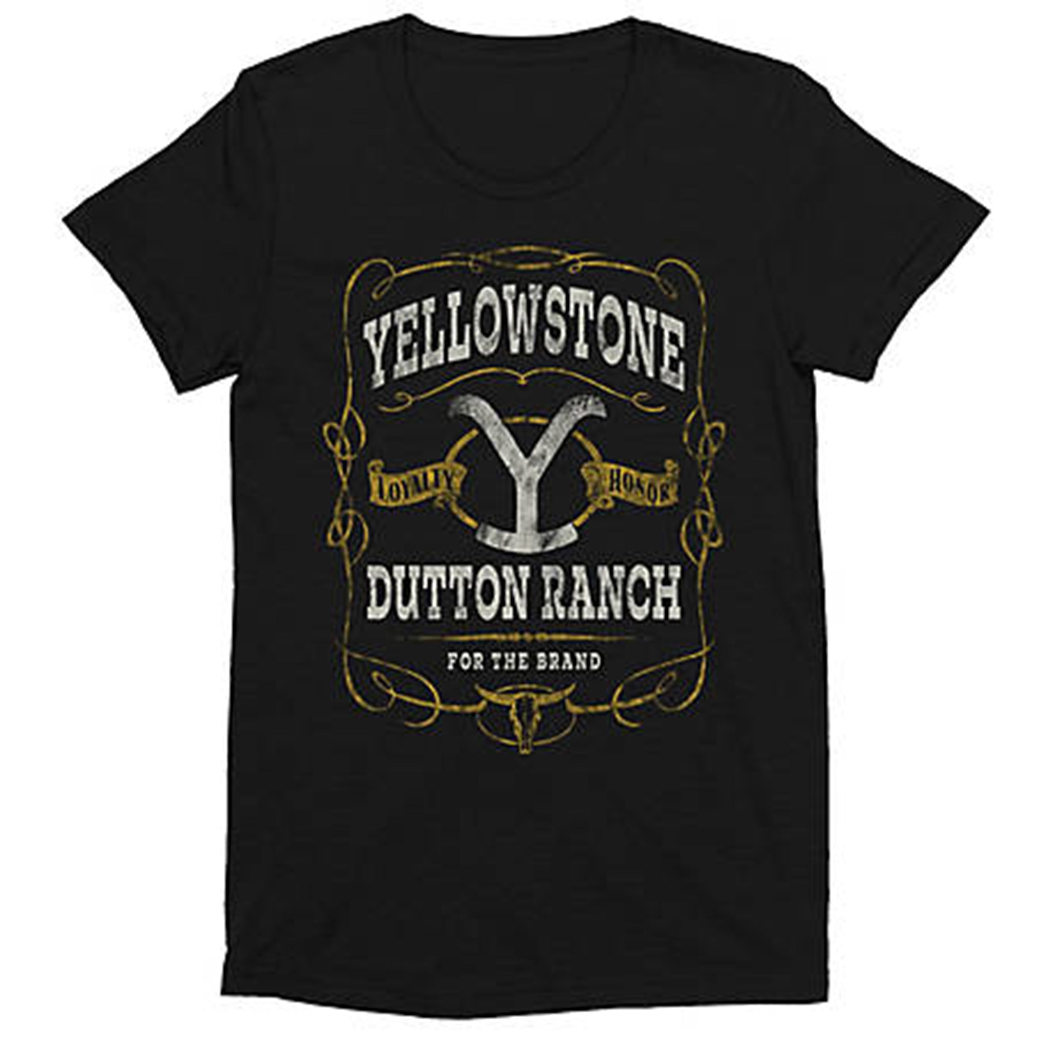 Are you really a Yellowstone fan, if you don't have this shirt in your closet. This bold graphic tee features not only the Yellowstone Dutton Ranch on the front but it also has the "for the brand" at the bottom. Along side the "Y" it also says loyalty and honor, which is what the Dutton Ranch stands for.