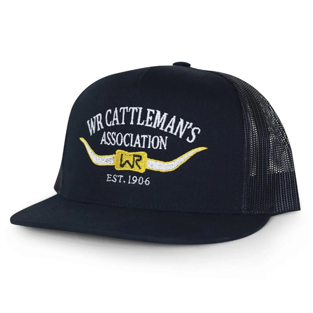 Get ready to wrangle some style points with the Black WR Cattlemen's Assoc. Embroidery cap from Whiskey Bent Hat Co! This 5 panel cap features a deep fit and high profile, with a buckram front lining and classic mesh back. With a 4" crown and 8 rows of stitching, this cap means business. Plus, it's adjustable with a matching plastic strap - one-size-fits-most never looked so good!