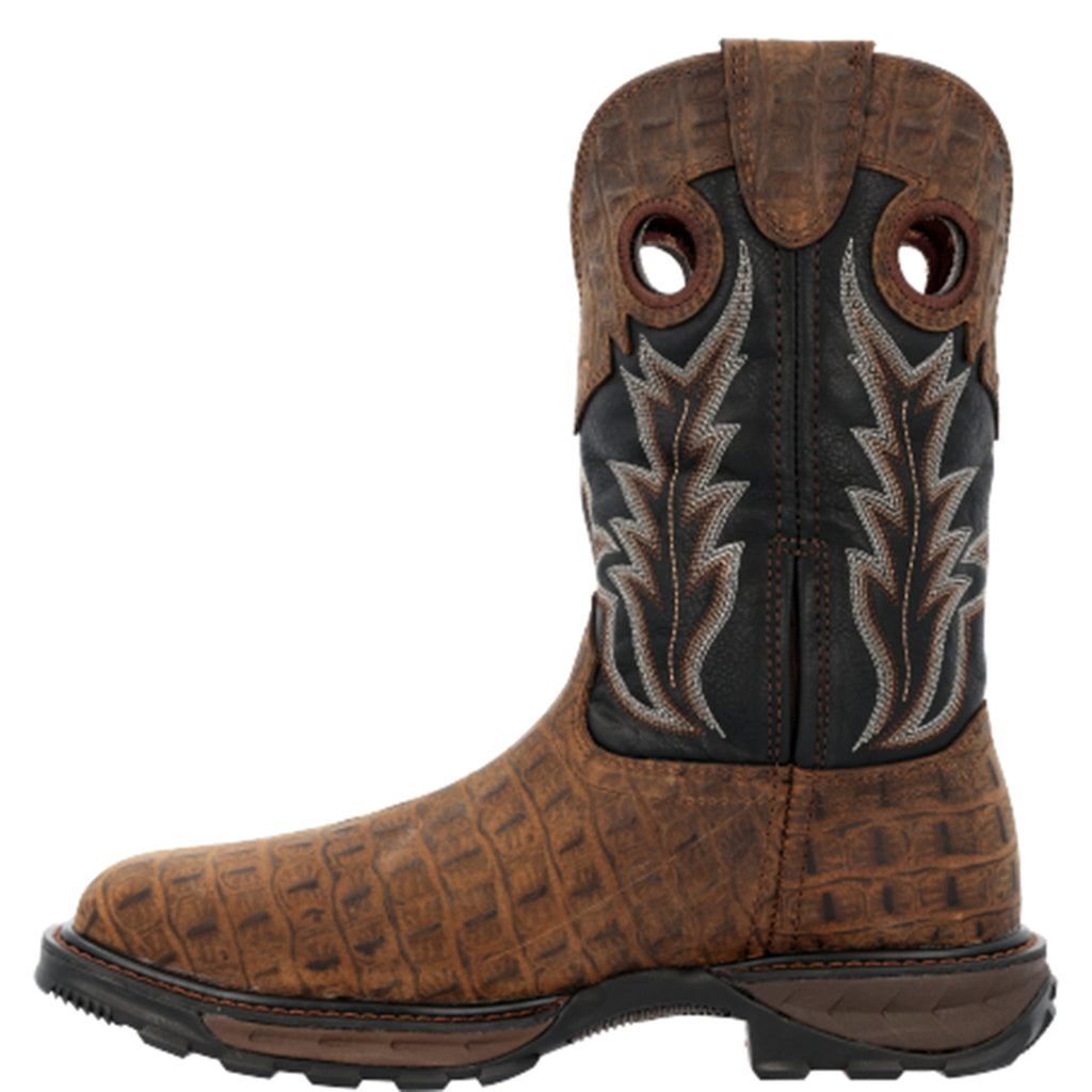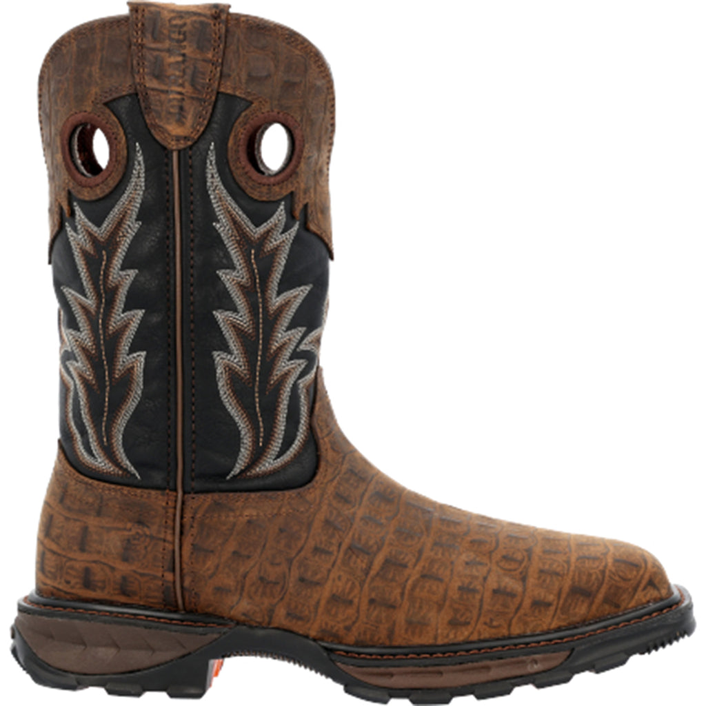 These boots from Durango feature ASTM 2413 safety toe protection and a multi-durometer rubber outsole with high-impact outer lugs for maximum durability, this boot is designed for challenging work conditions, while the full-grain leather with faux exotic gator embossed foot adds a touch of style.
