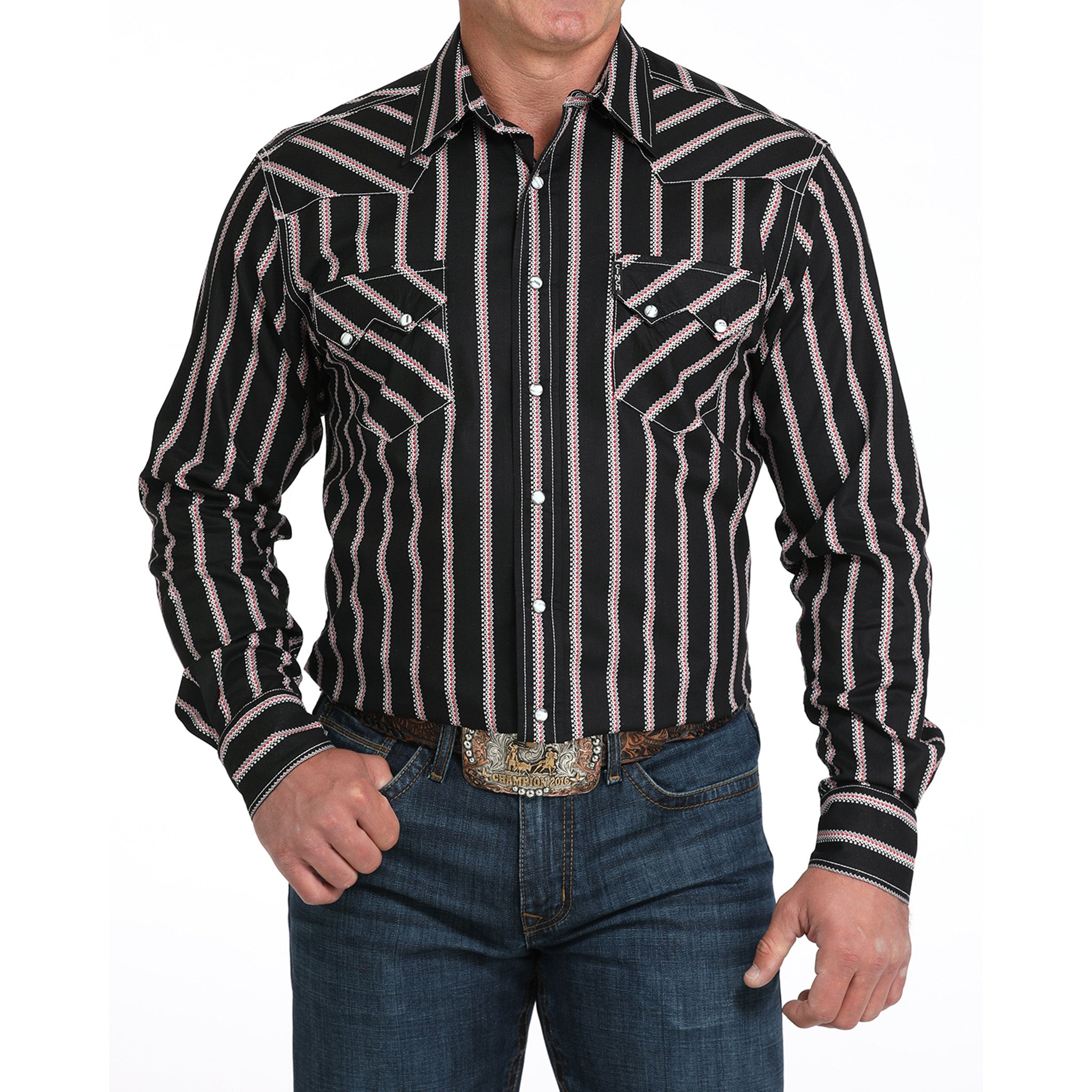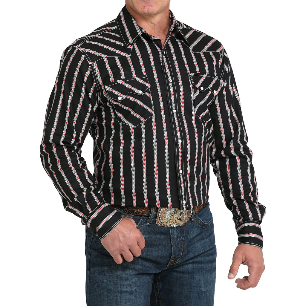 Cinch Black/Red/White Geometric Striped Long Sleeve Shirt