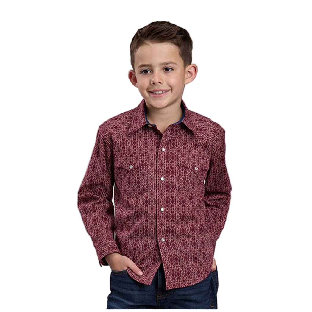 Roper Boys Red Aztec Stripe Long Sleeve Shirt