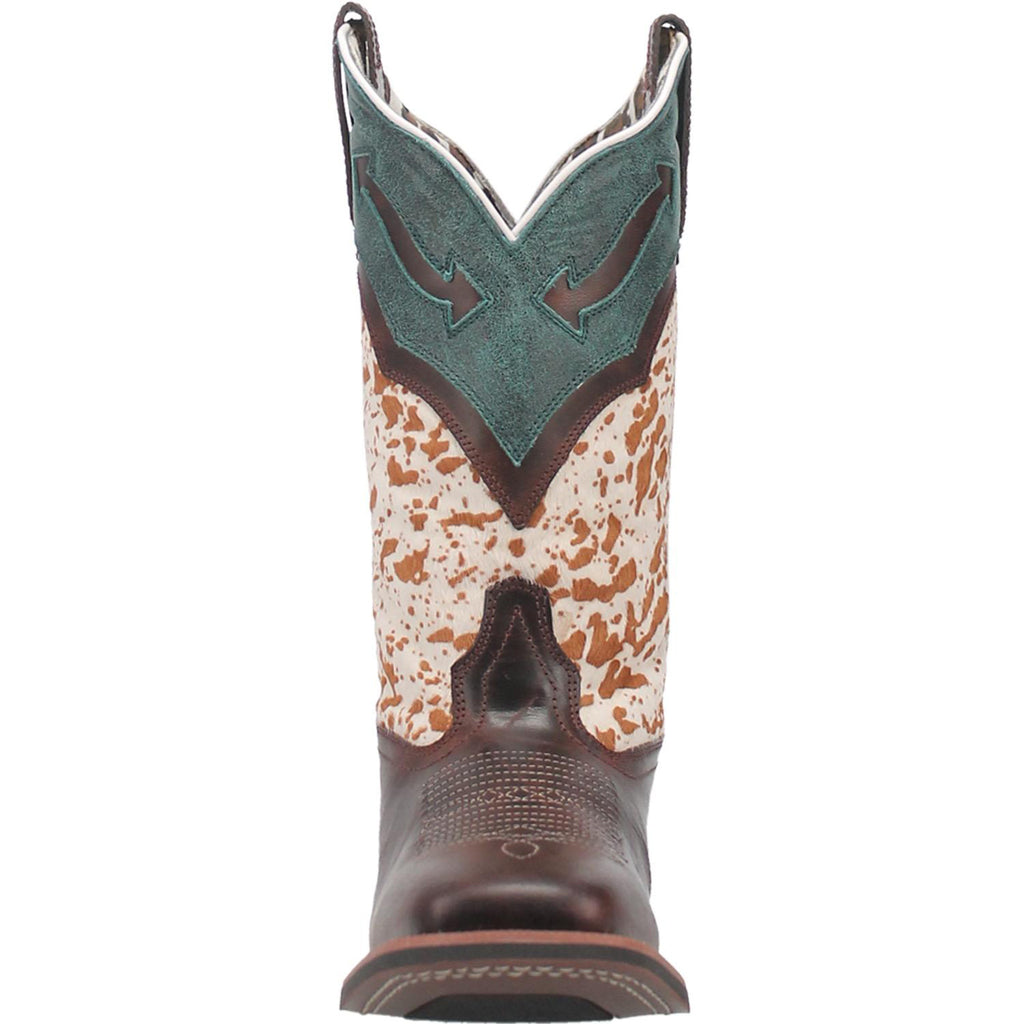The Laredo Wild Arrow takes this season's popular Hair-on leather and pairs it with warm blue and brown. A truly unique design. Features broad square toe, stockman heel, removable orthotic and Cowboy approved lightweight outsole.