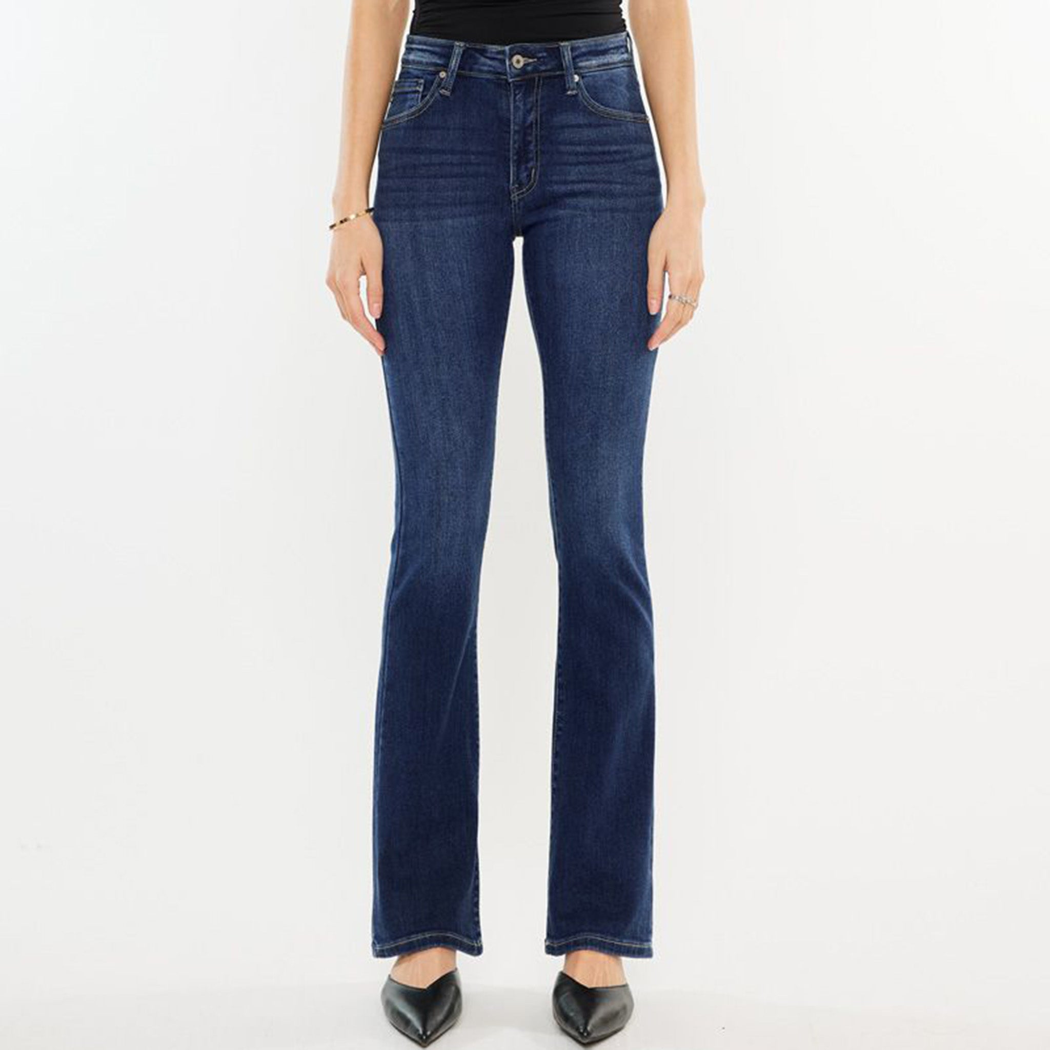The Denver High Rise Bootcut Jeans come in a flared, bootcut fit with whiskering and a gently faded wash for a classically chic look. Sits above the natural waistline as it tapers down the thigh and flares out at the calf. Made with stretch denim that moves with your body as it maintains its shape even after multiple wears.