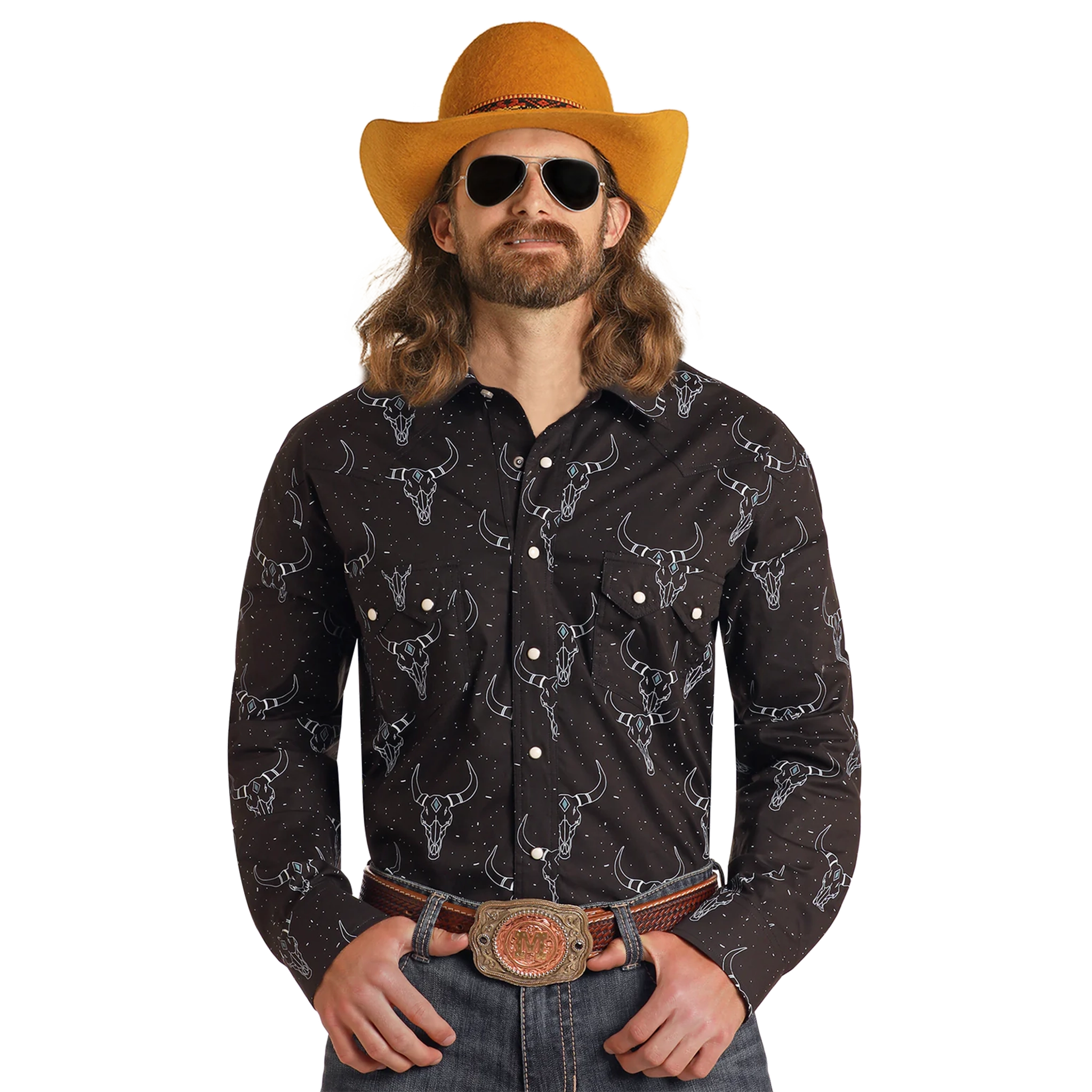 Show off your bold style with the Rock & Roll Cowboy Dale Brisby Longhorn Skull Long Sleeve. Featuring a striking longhorn skull design, this shirt blends rugged western flair with rock-inspired edge. Perfect for those who want to stand out while staying comfortable all day long. Whether you're at a rodeo or out with friends, this lively long sleeve adds attitude and personality to your wardrobe.