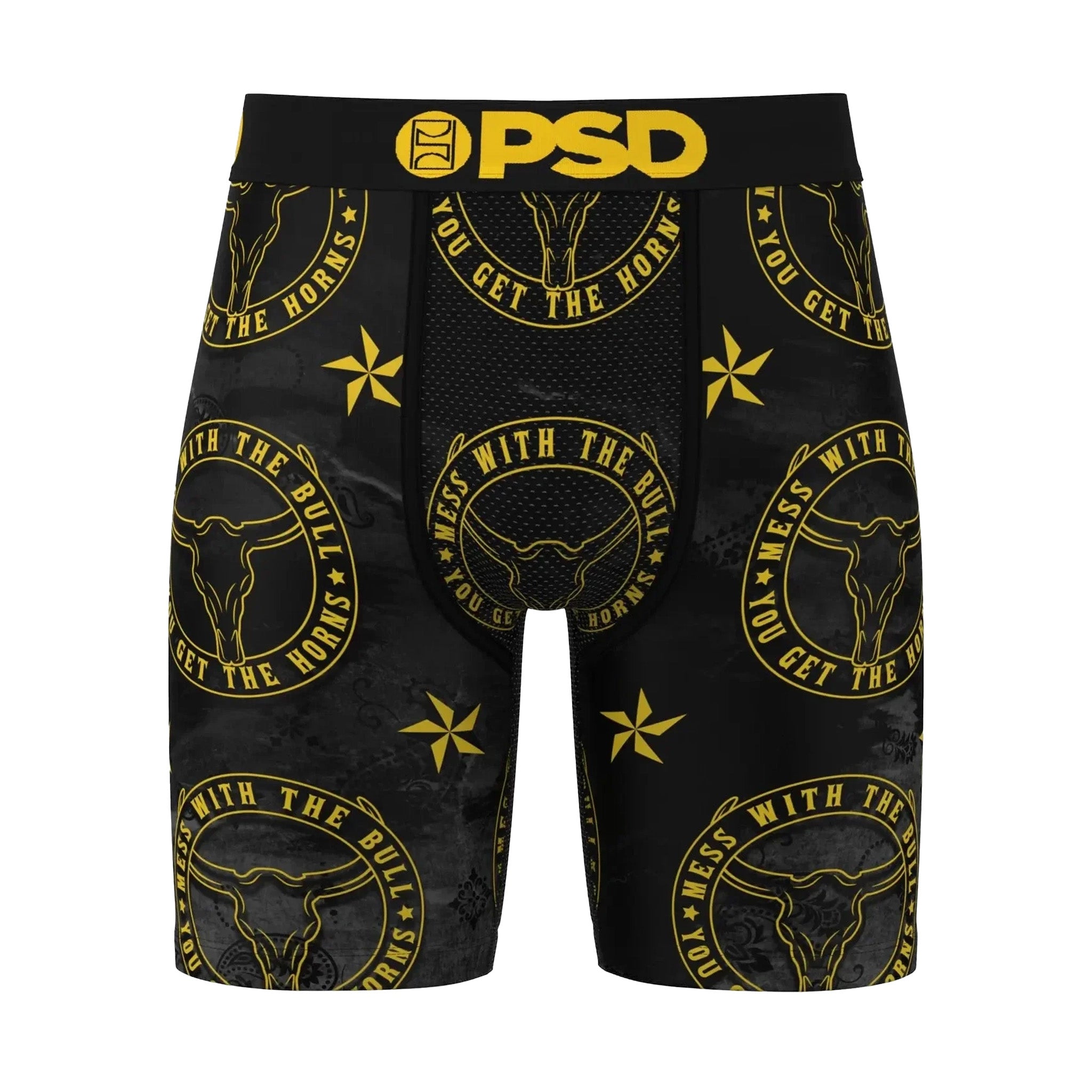 If you mess with the bull, you get the horns!! The Don’t Mess briefs come with our ultra-comfy Signature Waistband, a breathable Micromesh pouch, and four-way stretch fabric. These PSD 7” Standard Length Briefs won’t roll or ride, making them ideal for everything from everyday wear to your toughest workouts.