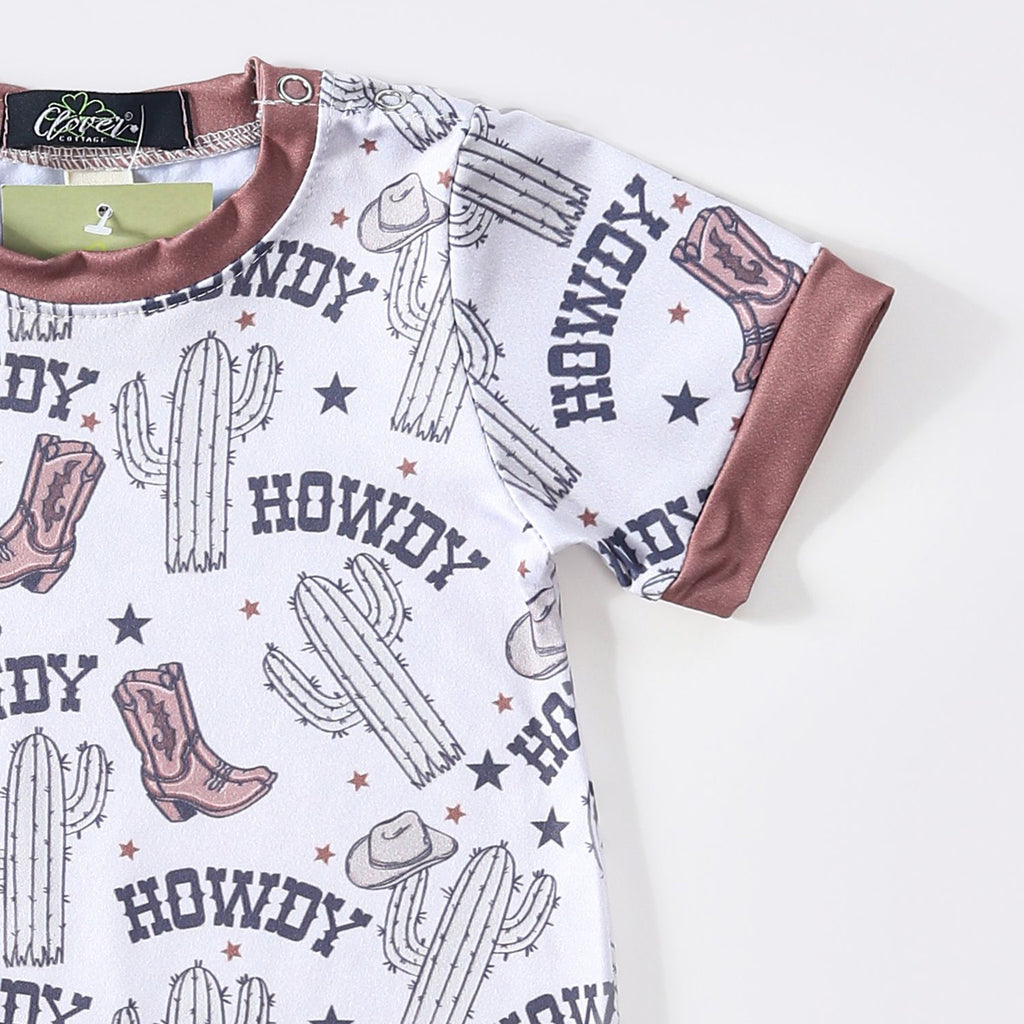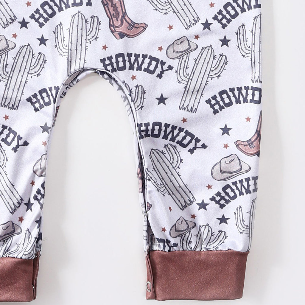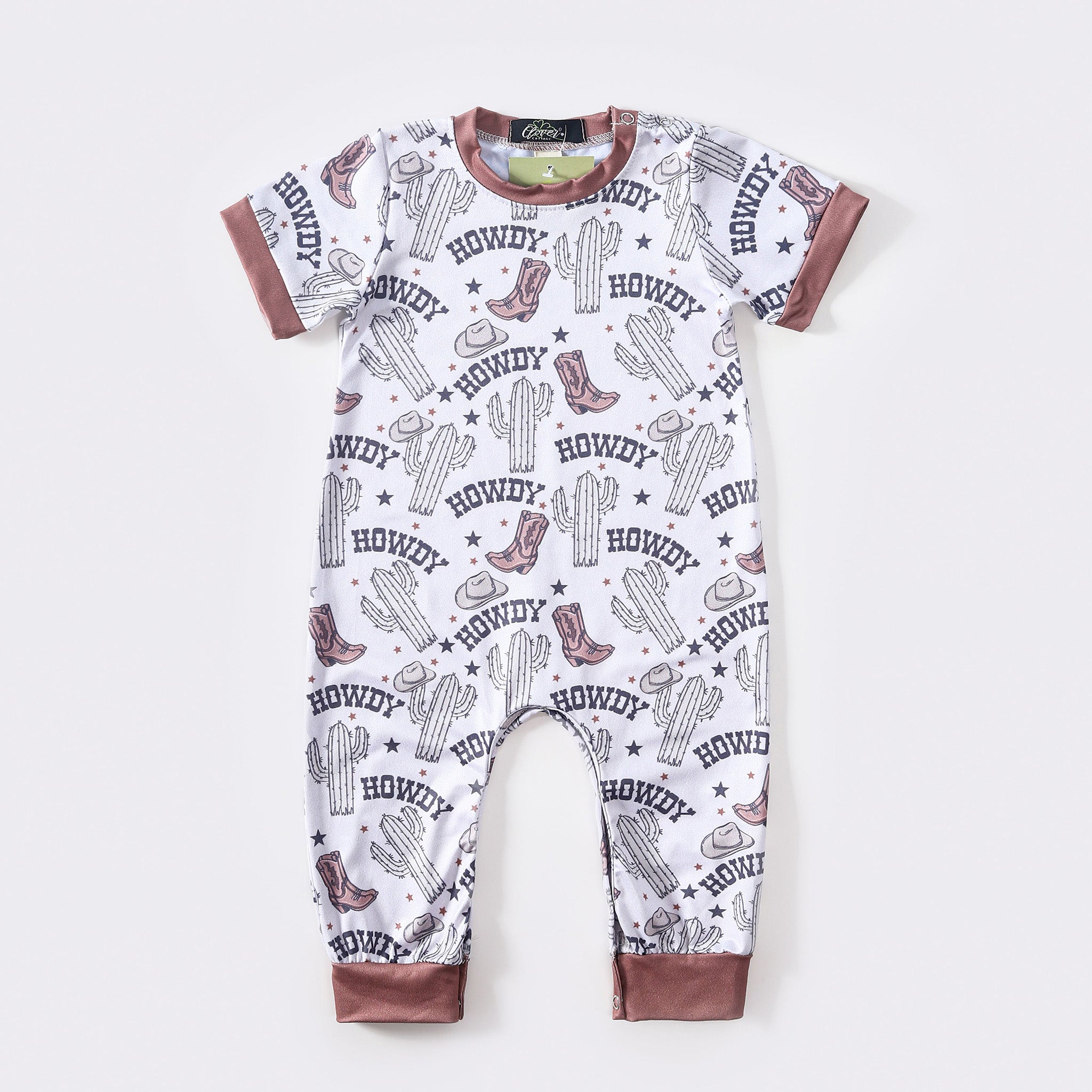 Keep your little one stylish and comfortable in our Boy's Howdy Cactus Romper. Made with soft and breathable fabric, this romper features a playful cactus print that will bring a touch of fun to any outfit. Perfect for any occasion, this romper will keep your child looking and feeling great.