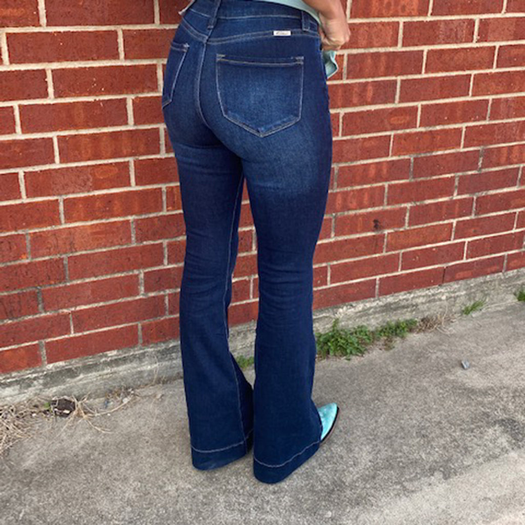 These cute Dark wash KanCan Trousers are just the form fitting jeans you will love featuring a high-rise fit to accentuate the waist, whiskering, slight fading, minimal hardware, and a 5-pocket design.
